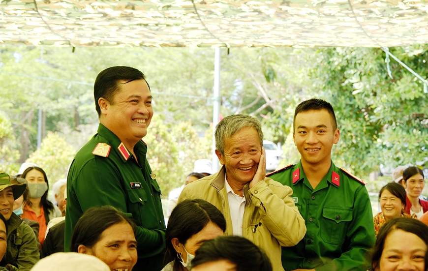 Trung tướng Đỗ Văn Bảnh, Chính ủy Học viện Lục quân trò chuyện, thăm hỏi gia đình chiến sĩ mới.