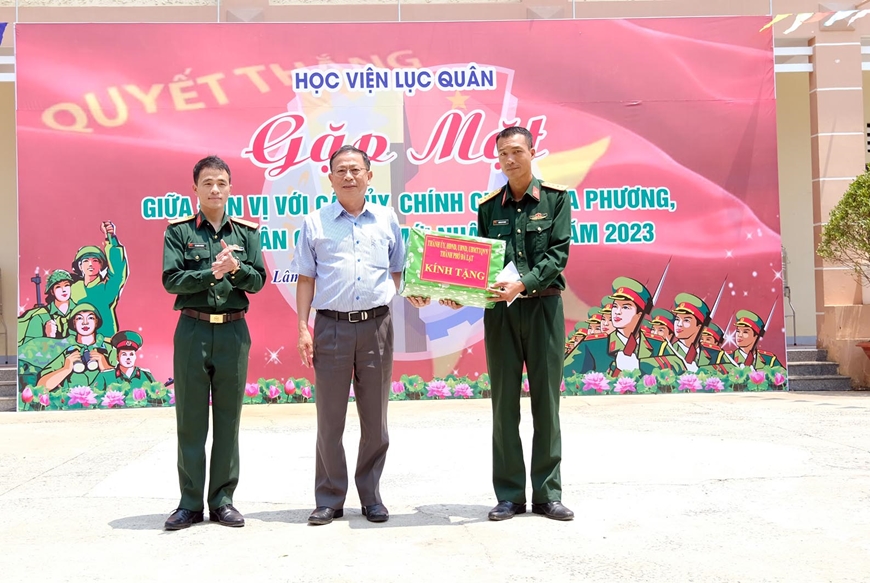 Tại buổi gặp mặt, đại diện lãnh đạo các địa phương tặng quà cán bộ, chiến sĩ Đại đội Huấn luyện chiến sĩ mới, Học viện Lục quân. Đồng thời, lãnh đạo các địa phương cũng trực tiếp gặp mặt và động viên các chiến sĩ mới là thanh niên của địa phương.