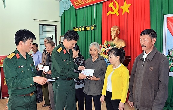 Gia đình chính sách, hộ nghèo xã Tam Bố, huyện Di Linh nhận quà tết từ Học viện Lục quân.