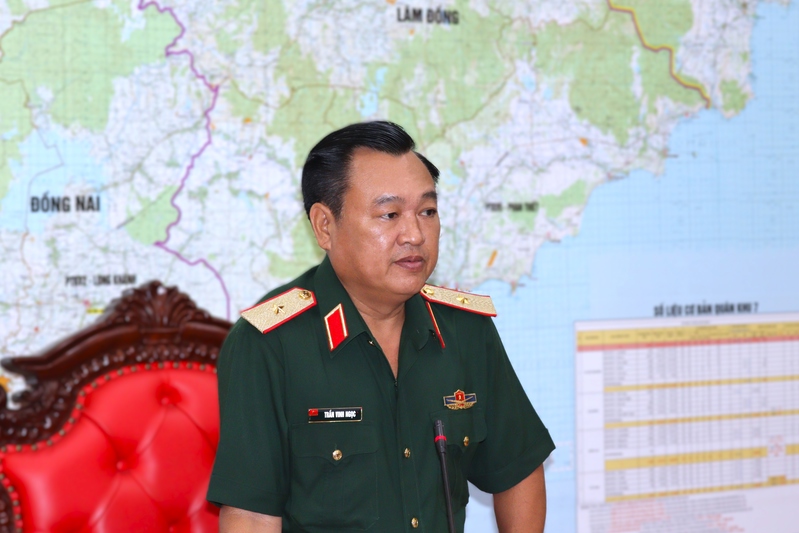 Thiếu tướng Trần Vinh Ngọc chủ trì hội nghị.