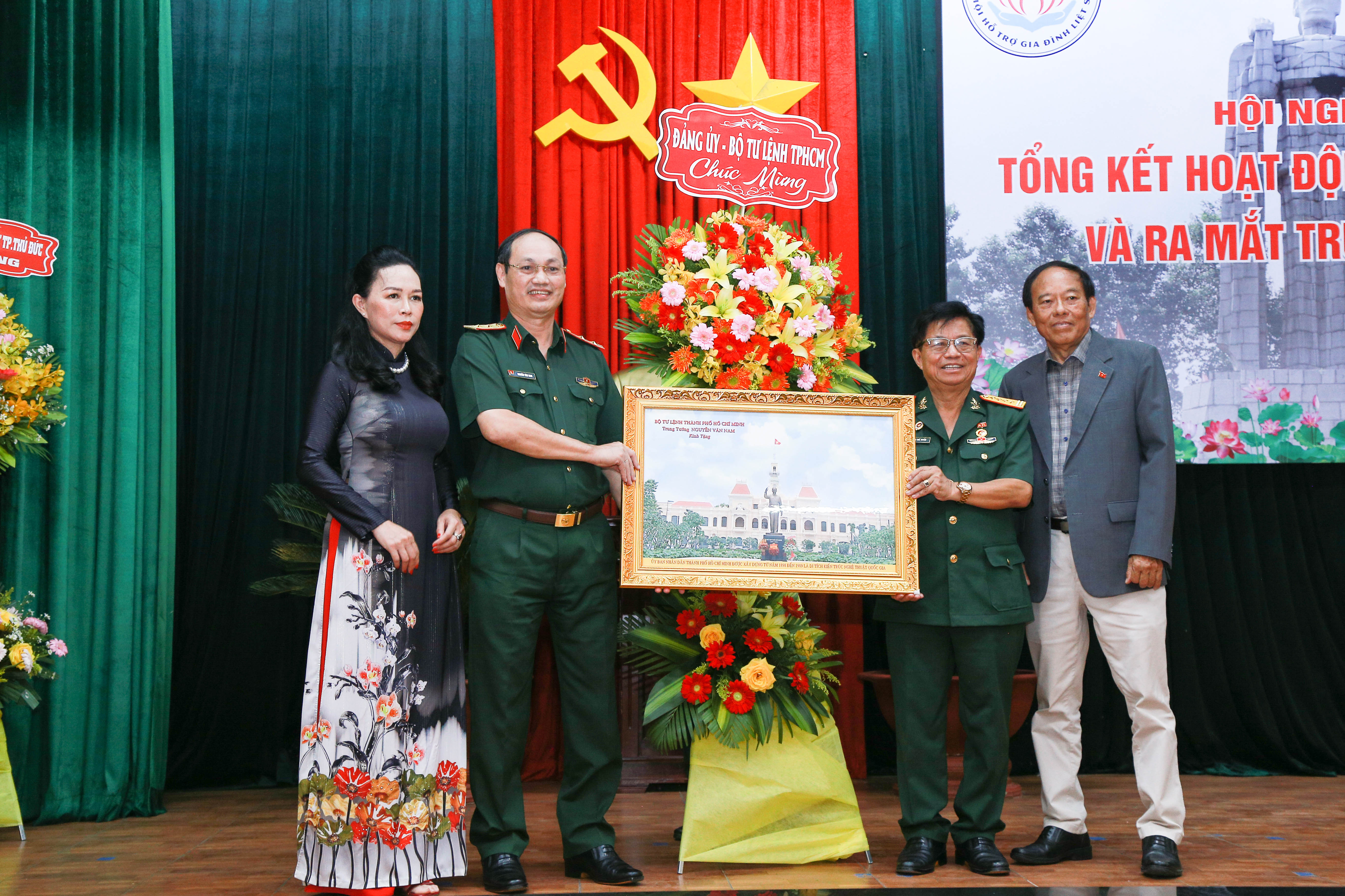 Trung tướng Nguyễn Văn Nam, Tư lệnh Bộ Tư lệnh TP HCM tặng hoa chúc mừng Hội Hỗ trợ gia đình liệt sĩ TP HCM.