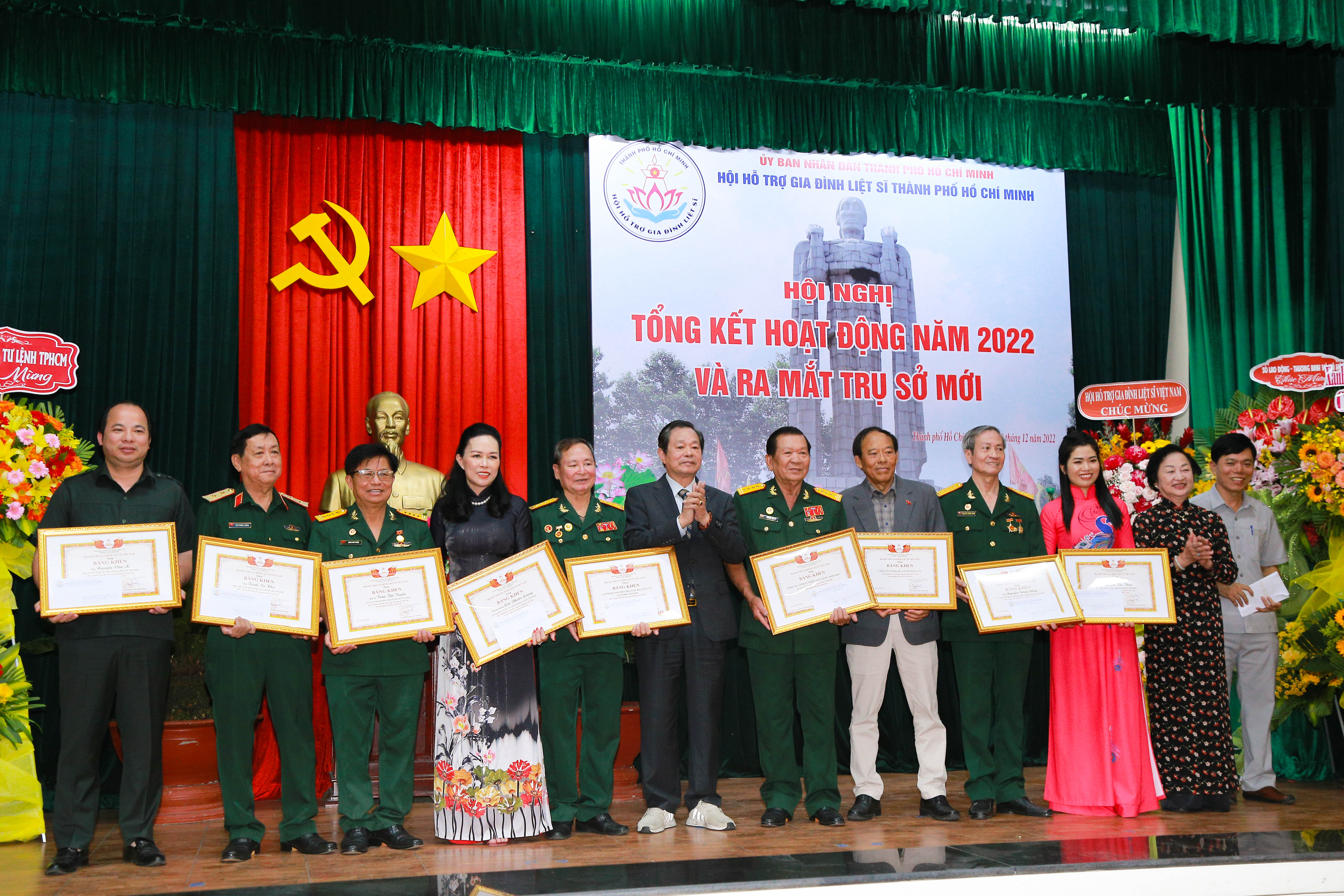 Tại buổi tổng kết, Hội Hỗ trợ gia đình liệt sĩ Việt Nam và Hội Hỗ trợ gia đình liệt sĩ TP HCM đã khen thưởng cho 09 tập thể và 12 cá nhân hoàn thành xuất sắc nhiệm vụ cũng như đóng góp tích cực trong hoạt động tri ân liệt sĩ, chăm lo, hỗ trợ gia đình liệt sĩ năm 2022. Hội Hỗ trợ gia đình liệt sĩ TP HCM trao thư cảm ơn, tri ân các cá nhân, tổ chức, doanh nghiệp và nhà hảo tâm luôn đồng hành, hỗ trợ Hội trong năm 2022; tặng quà 10 Mẹ Việt Nam Anh hùng; ra mắt trụ sở mới tại địa chỉ số 999 Đồng Văn Cống, phường Thạnh Mỹ Lợi, TP Thủ Đức, TP HCM.