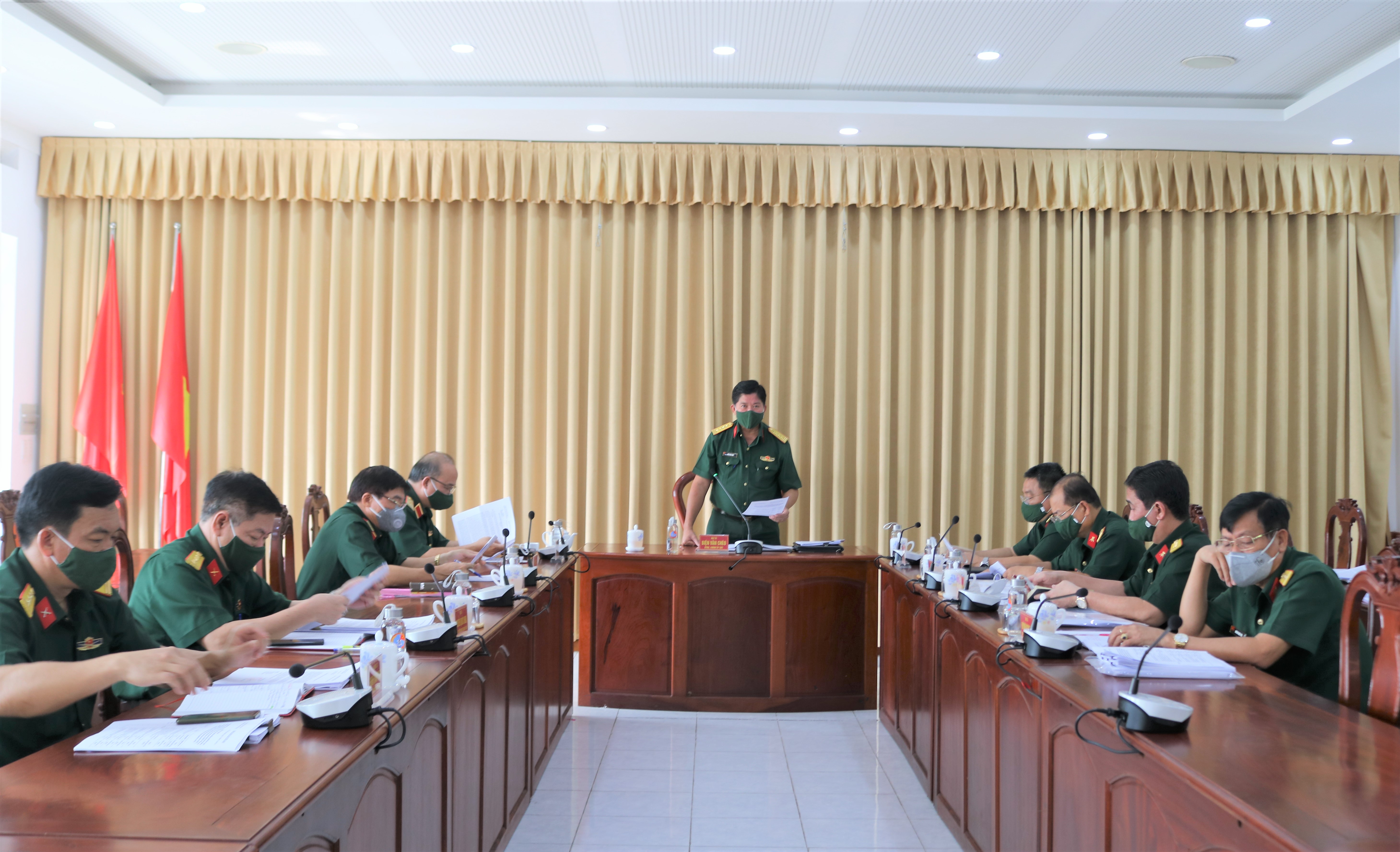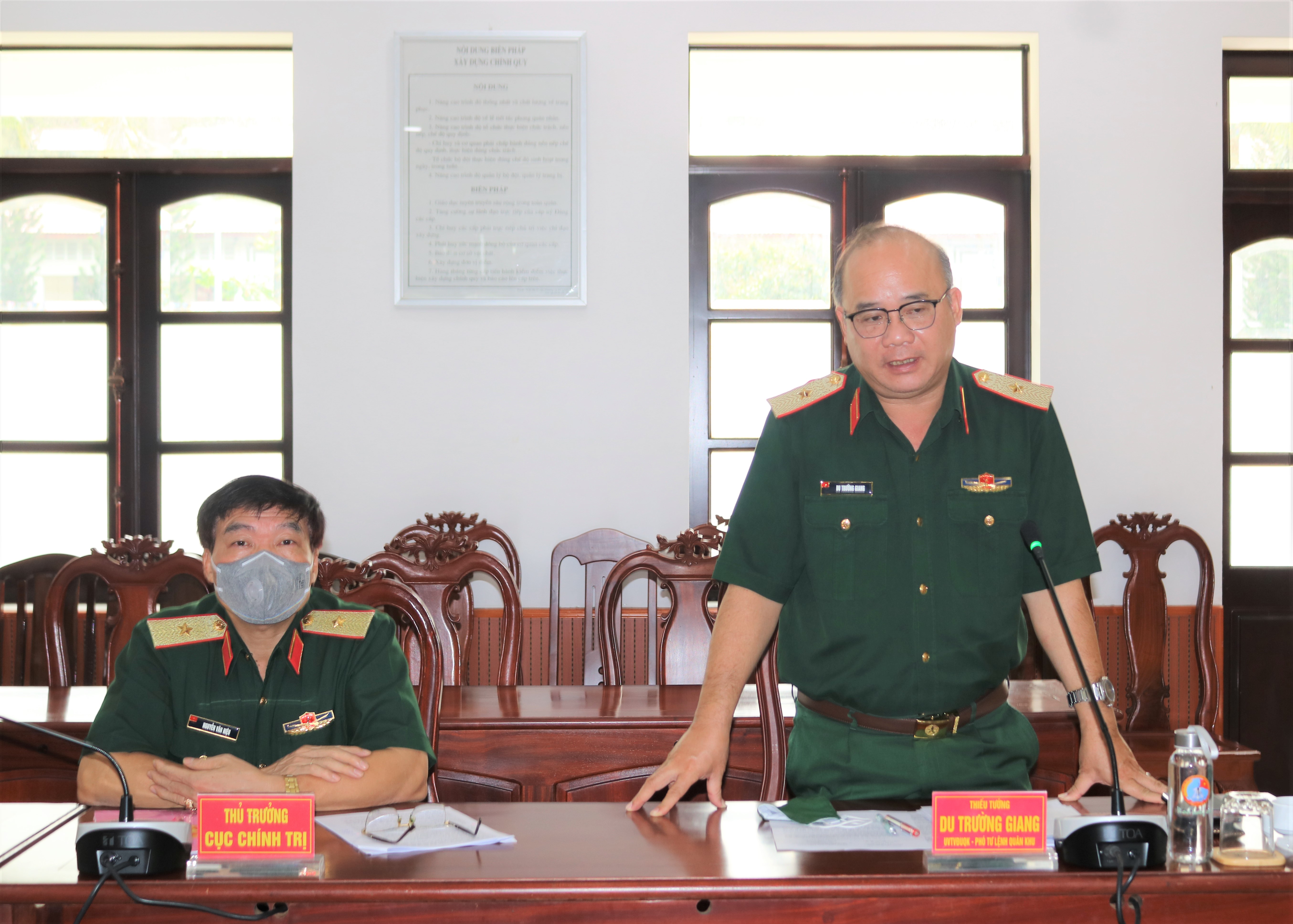 Thiếu tướng Du Trường Giang, Ủy viên Thường vụ Đảng ủy Quân khu, Phó Tư lệnh Quân khu phát biểu tại hội nghị.