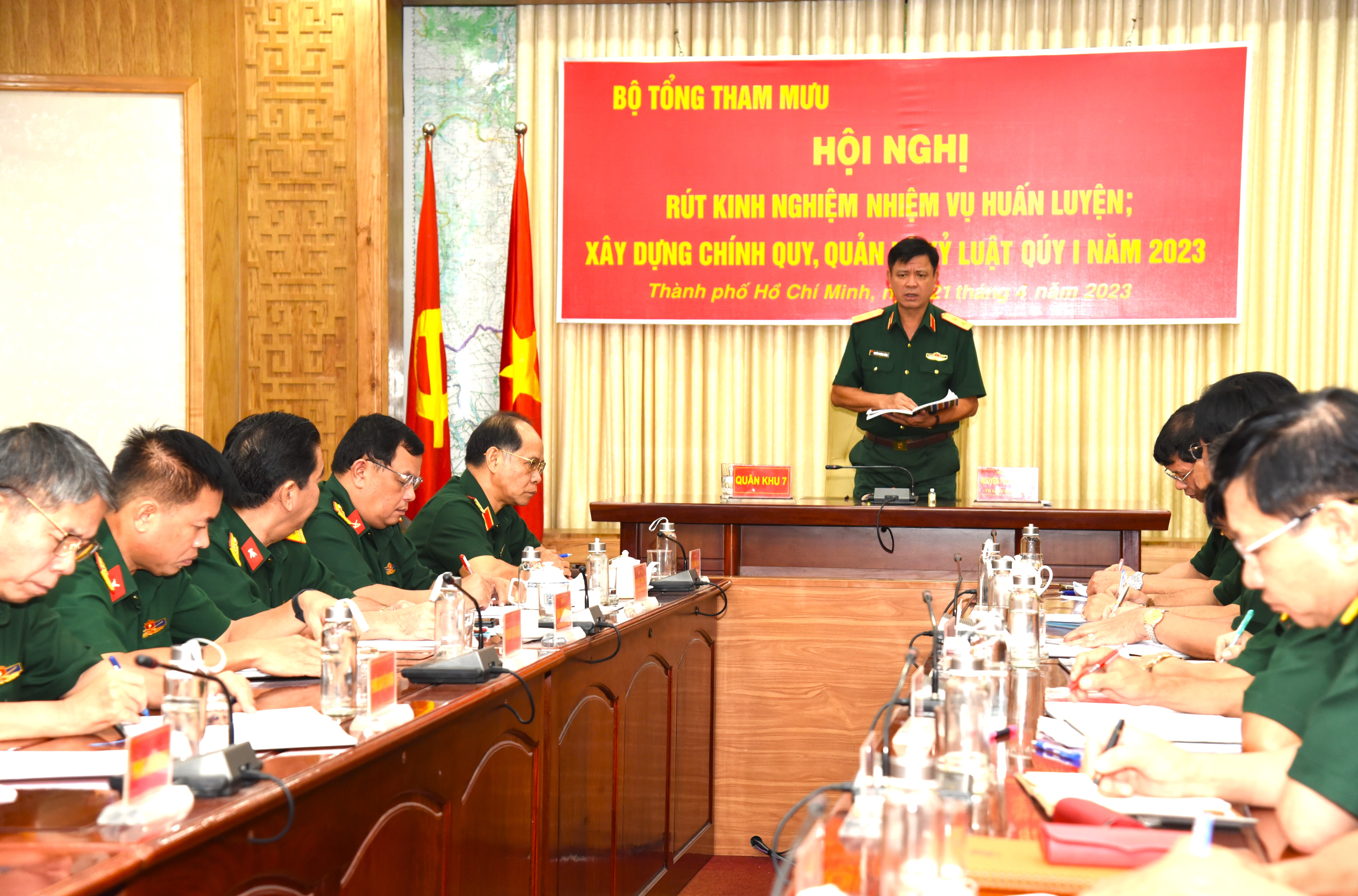 (QK7 Online) - Ngày 21-4, Bộ Tổng Tham mưu Quân đội nhân dân Việt Nam tổ chức Hội nghị trực tuyến rút kinh nghiệm nhiệm vụ huấn luyện, xây dựng chính quy, quản lý kỷ luật quý I năm 2023.