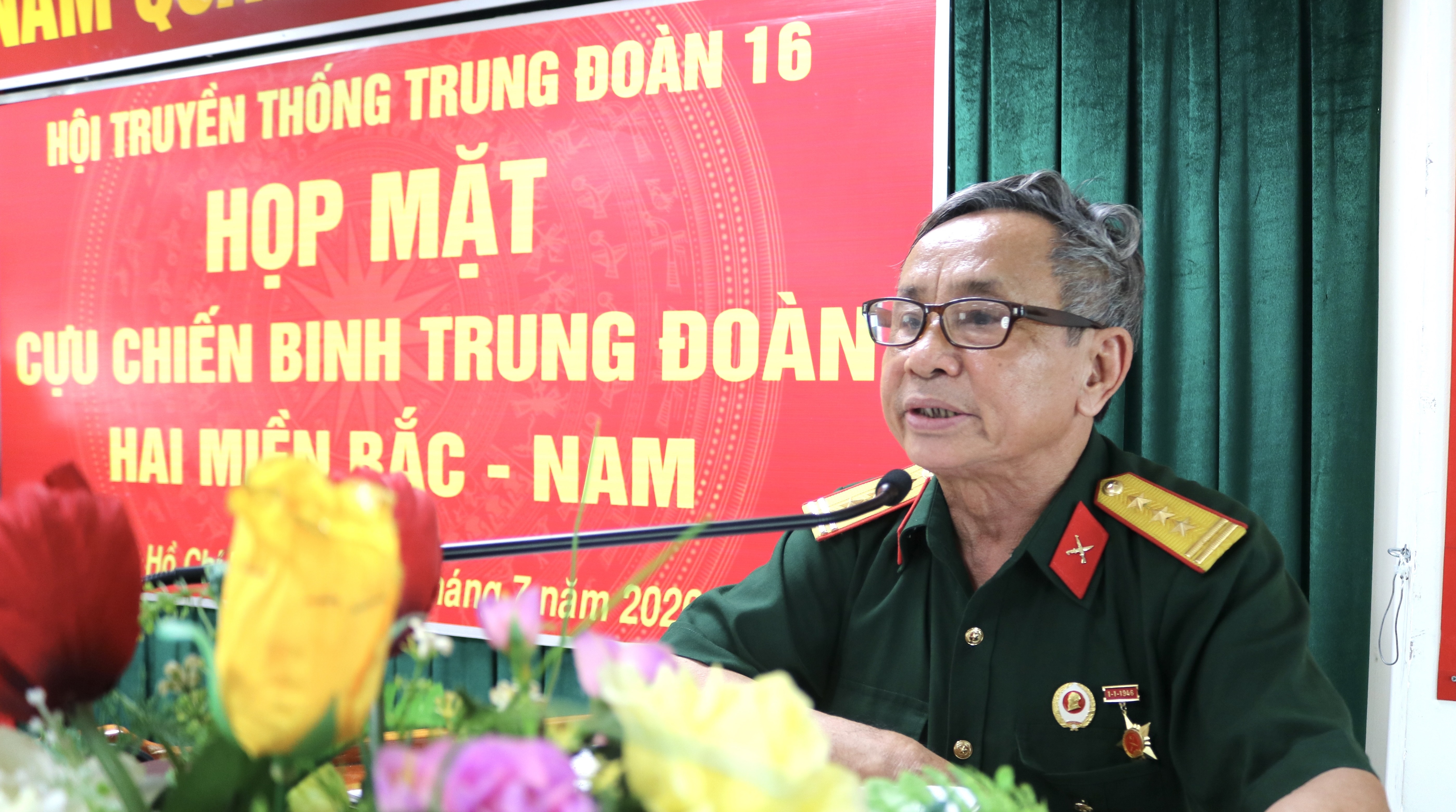 (QK7 Online) – Ngày 24/7, Hội truyền thống Trung đoàn 16 tổ chức họp mặt Cựu chiến binh Trung đoàn hai miền Bắc - Nam. Đến dự và chúc mừng buổi họp mặt có Đại tá Lê Thanh Nam, Trưởng phòng Tổ chức Quân khu 7; đại diện Phòng Chính sách, Cục Chính trị Quân khu, cùng các Cựu chiến binh của Trung đoàn qua các thời kì.