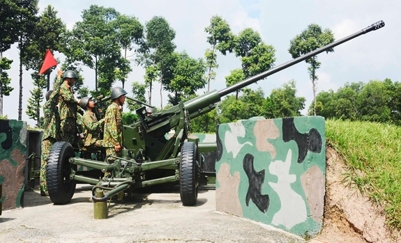 Khẩu đội pháo phòng không của Tiểu đoàn 12 (Lữ đoàn 71) luyện tập bắn mục tiêu ban ngày.
