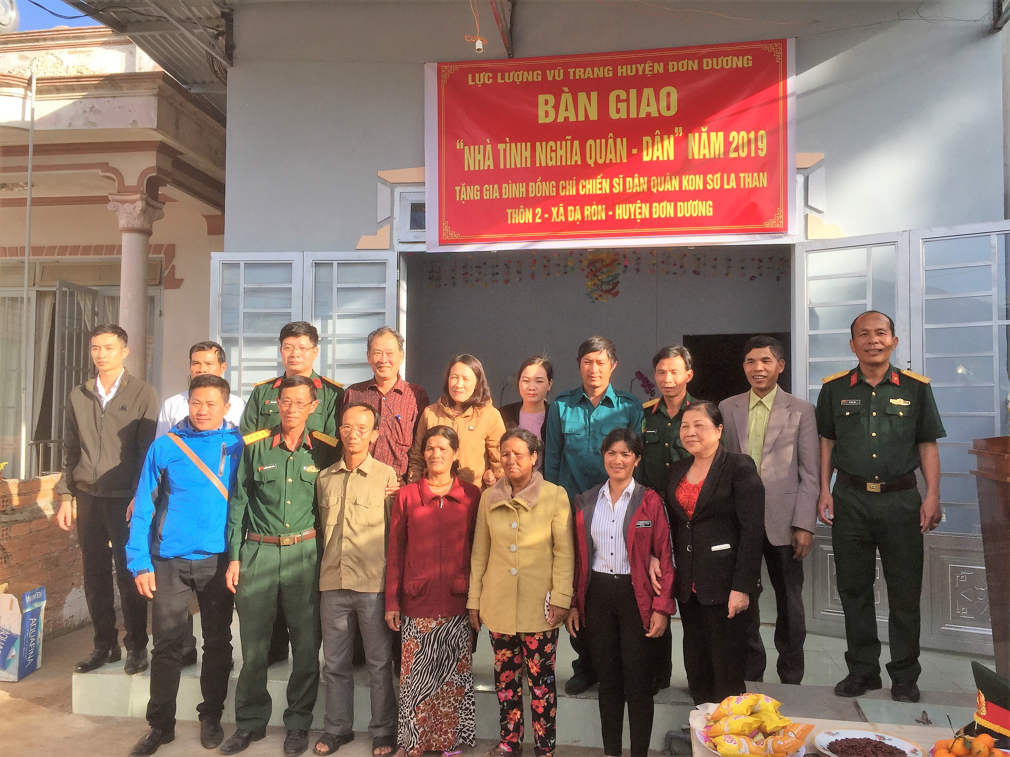 (QK7 Online) - Ngày 16/12, Ban CHQS huyện Đơn Dương phối hợp với Ủy ban MTTQ Việt Nam và các ban, ngành đoàn thể huyện tổ chức bàn giao nhà “Nghĩa tình quân- dân” cho gia đình đồng chí Kon Sơ La Than, chiến sĩ dân quân xã Đạ Ròn.