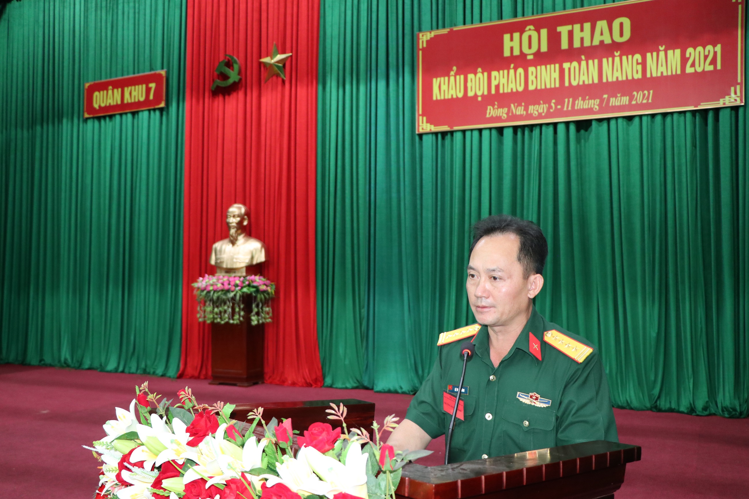 Đại tá Lê Thanh Bình, Phó Tham mưu trưởng Quân khu phát biểu khai mạc hội thao.