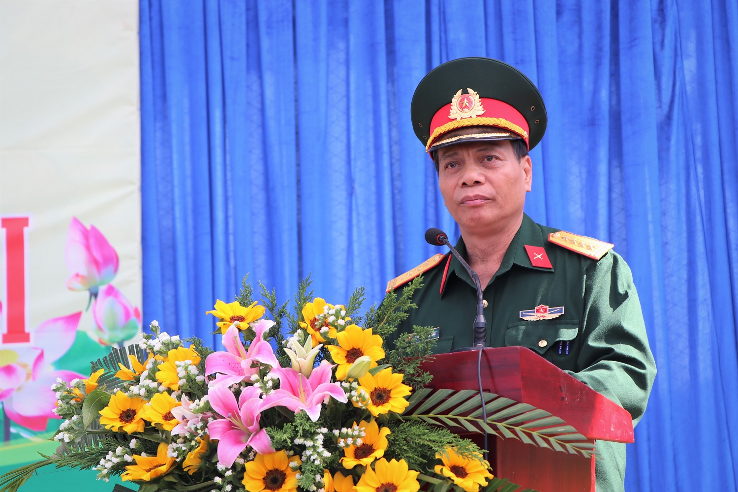 Đại tá Nguyễn Công Anh, Phó Chủ nhiệm Chính trị Quân khu phát biểu tại buổi lễ.