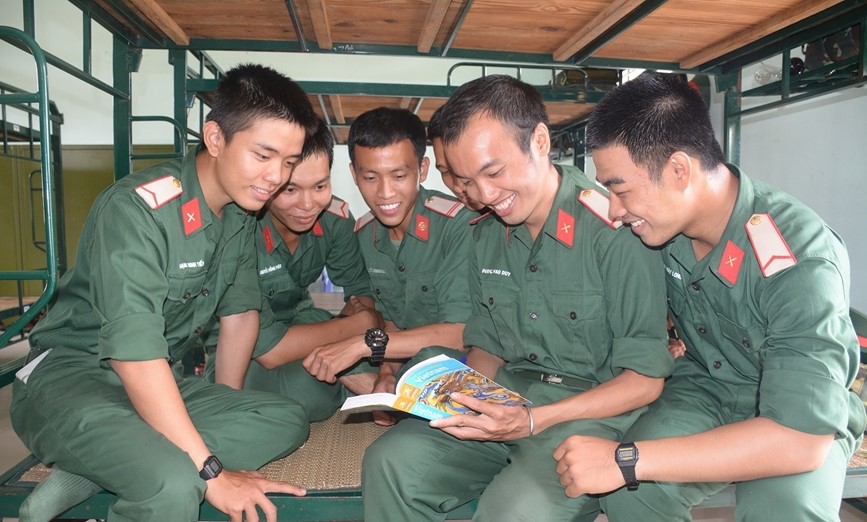 Tham quan hệ thống doanh trại của các chiến sĩ "chân đồng vai sắt", phòng ở của họ không chỉ tạo ấn tượng với chúng tôi bởi những hàng chăn, hàng chiếu vuông vắn, sạch sẽ, chính quy, thống nhất, mà còn bởi hình ảnh những cuốn sách được sắp đặt gọn gàng trên các giá ba lô. Đó là tổng hợp các mẩu chuyện viết về Bác, sách viết về Đại tướng Võ Nguyên Giáp, hồi ký của các tướng lĩnh; văn hóa ứng xử trong giao tiếp, từ điển tiếng Anh...