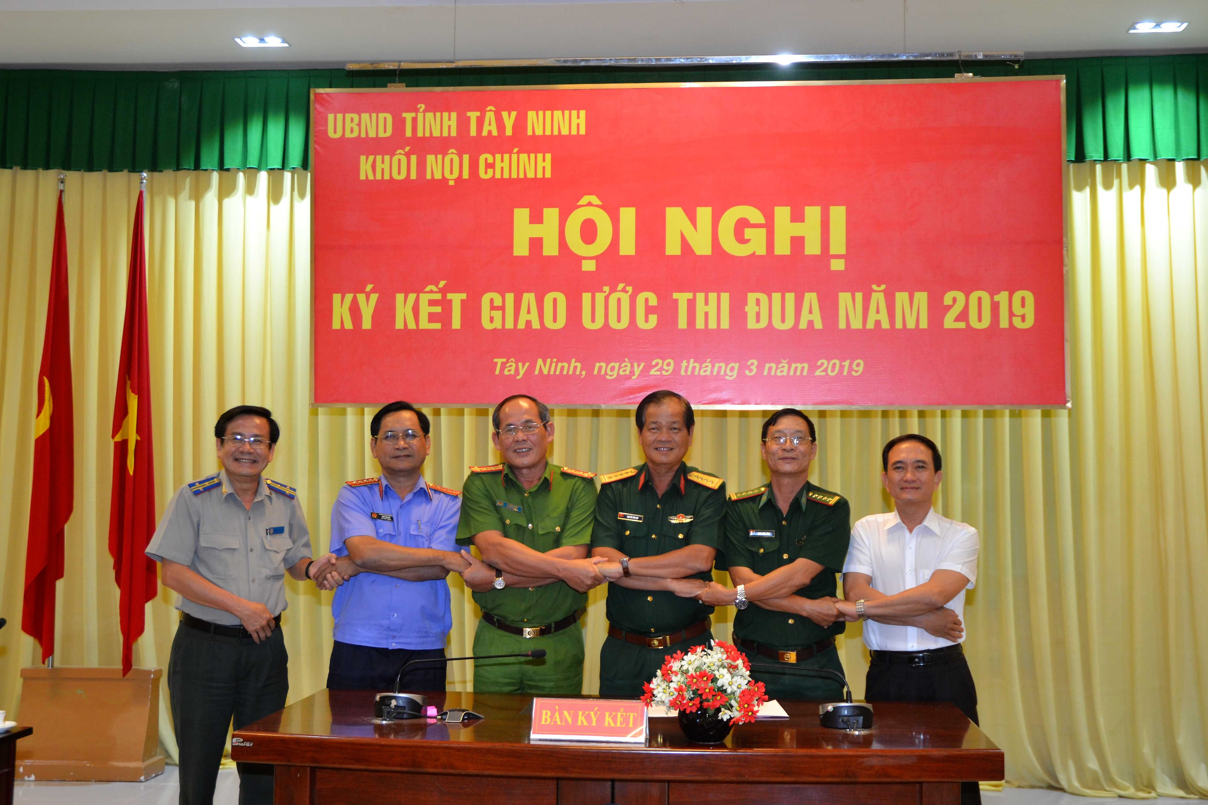 Tại hội nghị, đại diện lãnh đạo trong khối thi đua nội chính thống nhất cao với các nội dung, chỉ tiêu, biện pháp và quy chế hoạt động thi đua, thống nhất ký kết giao ước thi đua năm 2019 với chủ đề “Đoàn kết, sáng tạo, thi đua xây dựng và bảo vệ Tổ Quốc”.
