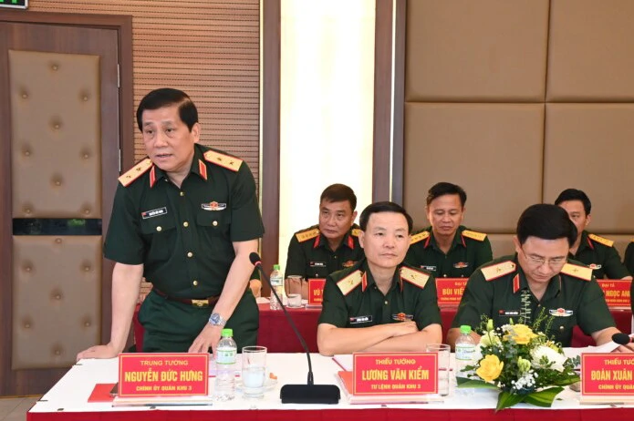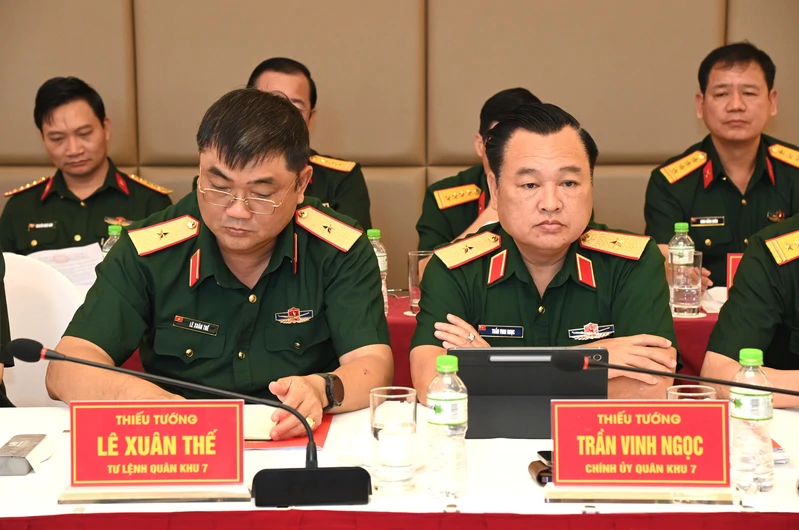 Quân khu 7 dự hội nghị có Thiếu tướng Trần Vinh Ngọc, Bí thư Đảng ủy, Chính ủy Quân khu; Thiếu tướng Lê Xuân Thế, Tư lệnh Quân khu; Thiếu tướng Phạm Anh Tuấn, Chủ nhiệm Chính trị Quân khu.