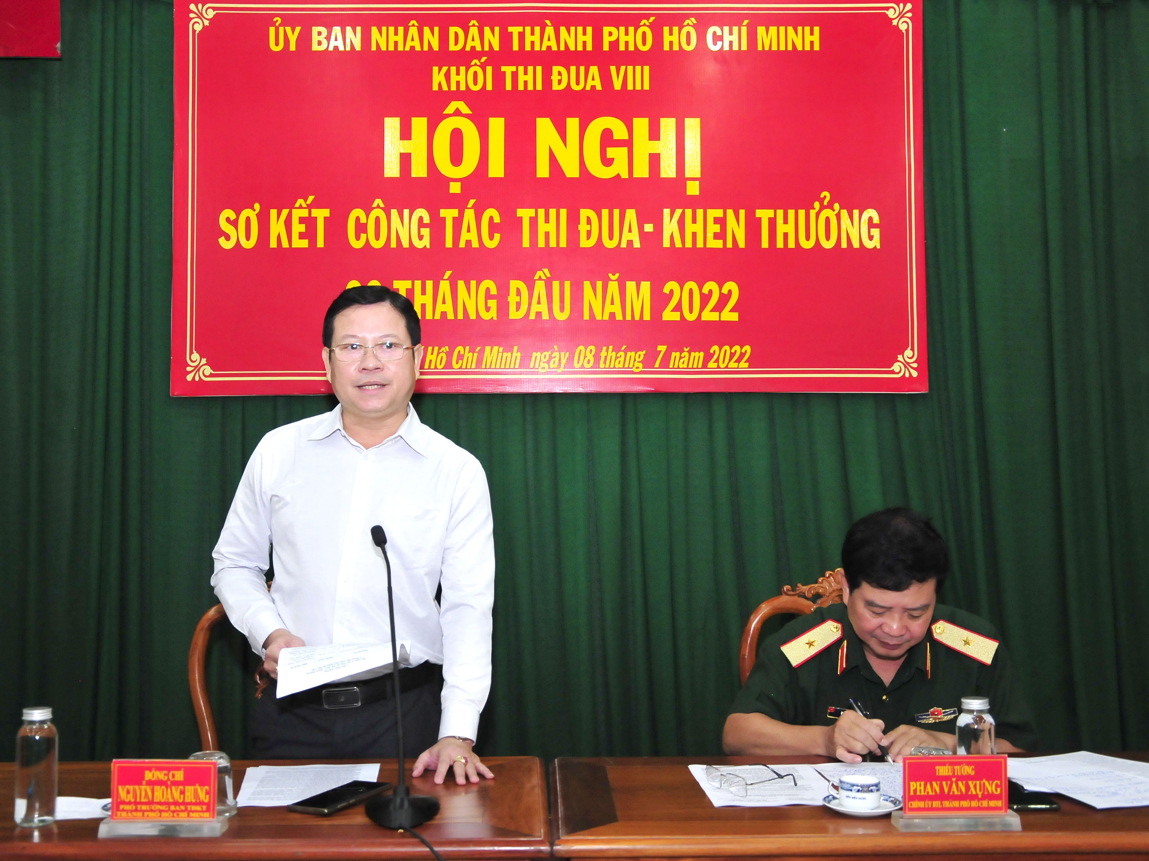(QK7 Online) - Sáng 8/7, Khối thi đua VIII UBND TPHCM sơ kết công tác thi đua khen thưởng 6 tháng đầu năm. Đến dự có đồng chí Nguyễn Hoàng Hưng, Phó Trưởng ban Thi đua khen thưởng Thành phố; Thiếu tướng Phan Văn Xựng, Thành ủy viên, Chính ủy Bộ Tư lệnh TPHCM và lãnh đạo các đơn vị trong Khối thi đua VIII.