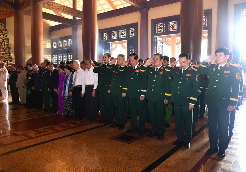 Đại biểu dâng hoa, dâng hương các anh hùng hùng liệt sĩ tại Đền tưởng niệm Liệt sĩ Bến Dược.