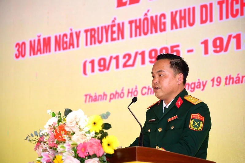 Tại buổi Lễ, Trung tá Triệu Văn Hiếu, Phó Bí thư Đảng ủy, Giám đốc Khu Di tích Lịch sử ĐĐCC đọc thư khen của Bộ trưởng Bộ Quốc phòng và vinh dự đón nhận Bằng khen của Thủ tướng Chính phủ vì có thành tích xuất sắc trong thực hiện nhiệm vụ huấn luyện, sẵn sàng chiến đấu, xây dựng đơn vị giai đoạn 2020 – 2024; đồng thời đón nhận Cờ truyền thống của UBND TP Hồ Chí Minh vì đã có thành tích xuất sắc trong 30 năm xây dựng và phát triển.