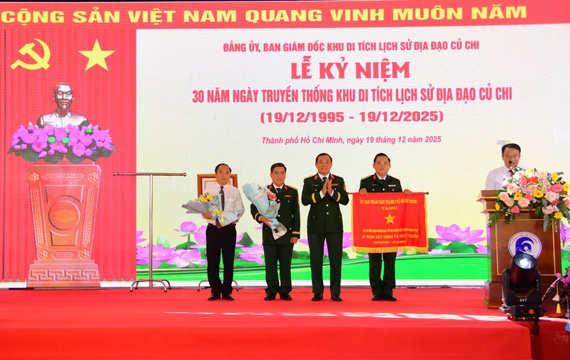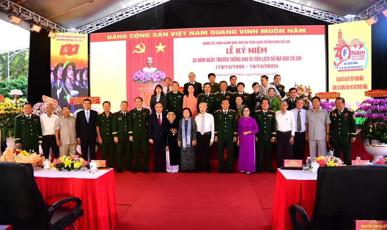 (QK7 Online) - Sáng 19/12, Khu Di tích lịch sử Địa đạo Củ Chi (ĐĐCC) long trọng tổ chức Lễ kỷ niệm 30 năm Ngày truyền thống (19/12/1995 - 19/12/2025). Tham dự buổi Lễ có các đồng chí: Trương Mỹ Hoa, nguyên Bí thư Trung ương Đảng, nguyên Phó Chủ tịch nước Cộng hòa xã hội chủ nghĩa Việt Nam; Đặng Minh Thông, Phó Bí thư Thành ủy Thành phố Hồ Chí Minh; Thiếu tướng Vũ Văn Điền, Ủy viên Ban Thường vụ Thành ủy, Tư lệnh Bộ Tư lệnh Thành phố Hồ Chí Minh; Đại tá Nguyễn Thành Trung, Thành ủy viên, Chính ủy Bộ Tư lệnh Thành phố Hồ Chí Minh; Mẹ Việt Nam Anh hùng Kiều Thị Nông; Anh hùng Lực lượng vũ trang nhân dân Tô Văn Đực.