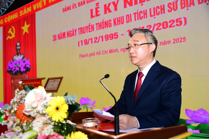 Phát biểu tại buổi Lễ, đồng chí Đặng Minh Thông, Phó Bí thư Thành ủy Thành phố Hồ Chí Minh chúc mừng, trân trọng ghi nhận và biểu dương những cống hiến, sự cố gắng của các thế hệ cán bộ, nhân viên Khu di tích lịch sử địa đạo Củ Chi trong suốt chặng đường lịch sử 30 năm qua.
