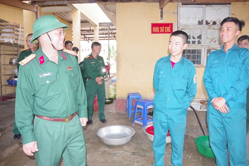 Chính ủy Bộ CHQS tỉnh thăm nơi ăn nghỉ của cán bộ, chiến sĩ.