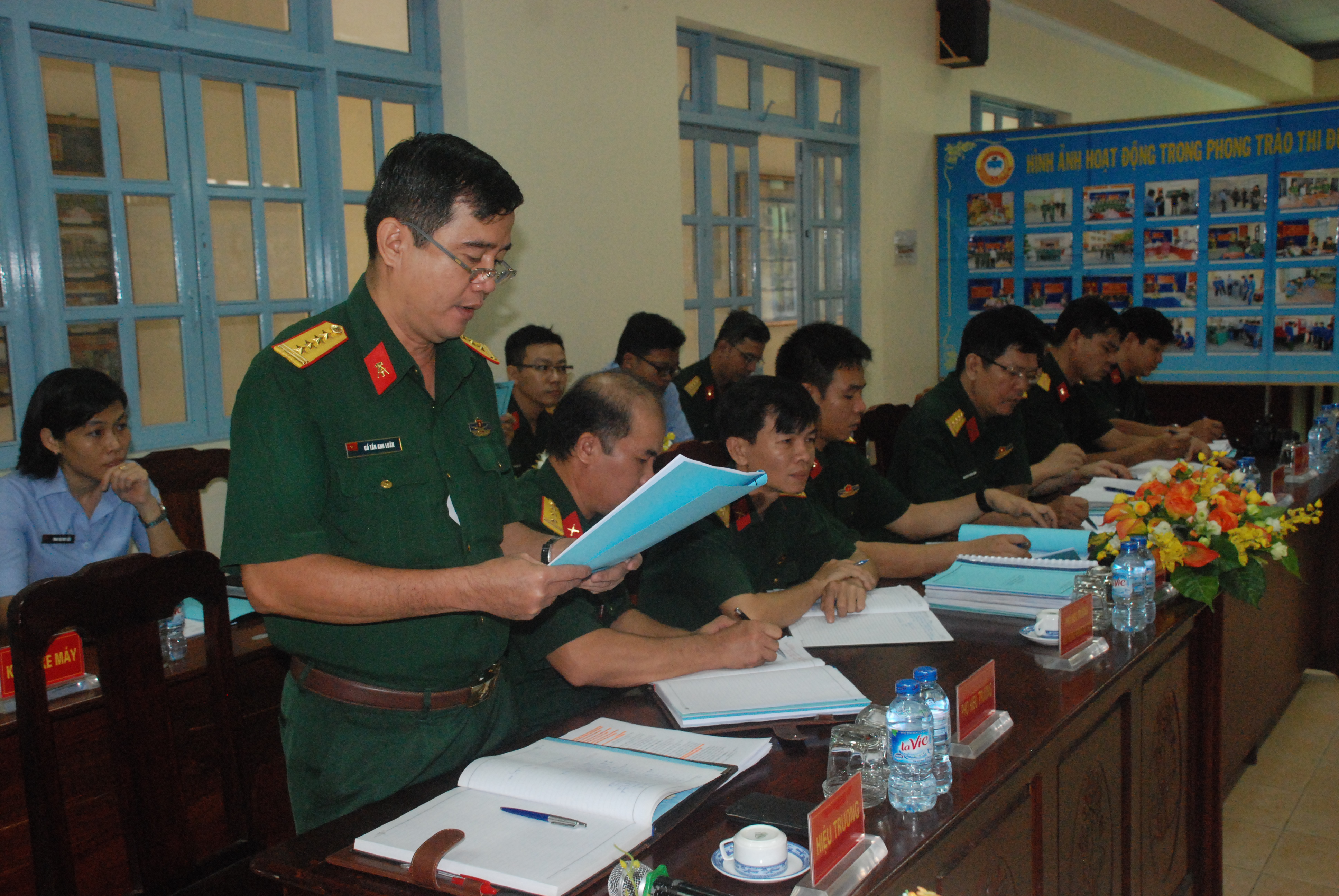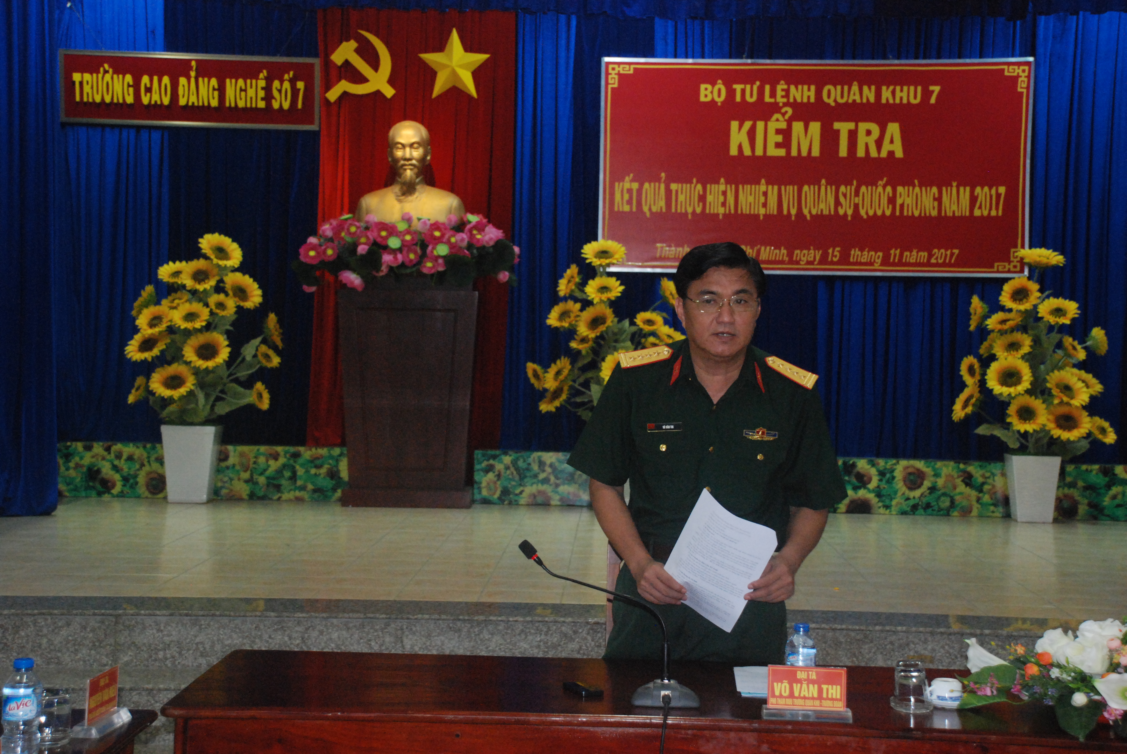 Đại tá Cổ Tấn Anh Luân, Hiệu trưởng Trường Cao đẳng nghề số 7 báo cáo kết quả thực hiện nhiệm vụ
