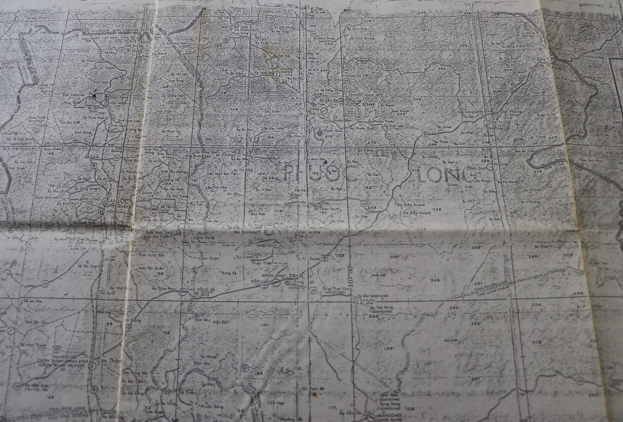 Chỉ tay vào tấm bản đồ được đã được tặng lại cho Bảo tàng Quân khu 7, ông cho biết đây là chiến lợi phẩm của Sư đoàn 7, một trong 3 Sư đoàn được Bộ chỉ huy Miền sử dụng trong Chiến dịch Nguyễn Huệ năm 1972, trên chiến trường miền Đông Nam Bộ thu lại của Không quân Mỹ trong trận quyết chiến Tàu Ô (nay thuộc xã Tân Khai, huyện Hớn Quản, tỉnh Bình Phước). Lúc đó ông là quyền Chính ủy Trung đoàn 141, Sư đoàn 7, trong hơn 150 ngày đánh hạ Tàu Ô (từ ngày 5/4 đến 28/8/1972), đơn vị ông có nhiệm vụ ngăn chặn các mũi phản công, chi viện của địch, tạo điều kiện phối hợp với các đơn vị bạn giải phóng Lộc Ninh và huyện Chơn Thành, tiến tới giải phóng tỉnh Phước Long. “Nhờ thu được tấm bản đồ quý giá này đã giúp chúng ta tránh được rất nhiều tổn thất từ các đợt không kích của Không quân Mỹ, đồng thời thay đổi chiến thuật, cách đánh phù hợp để tấn công địch. Trong thời bình, tấm bản đồ còn có giá trị phục vụ công tác dò tìm mộ liệt sĩ”. Thiếu tướng Nguyễn Ngọc Doanh, Nguyên Phó Tư lệnh chính trị Quân đoàn 4 nhớ lại.