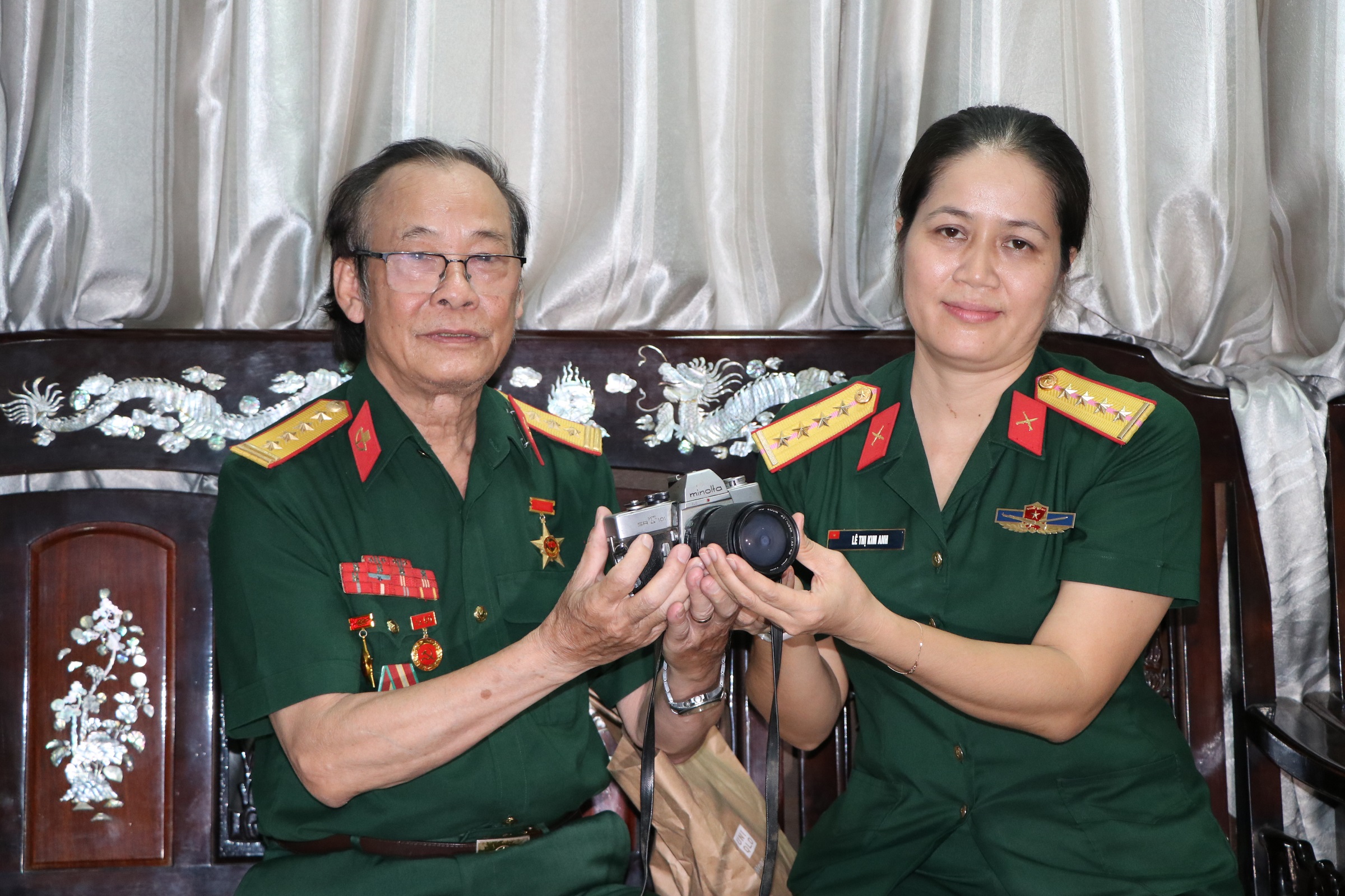 Đại tá, AHLLVTND Lê Mạnh Hùng tặng máy ảnh (người bạn thân thiết) của ông cho Bảo tàng Quân khu 7.