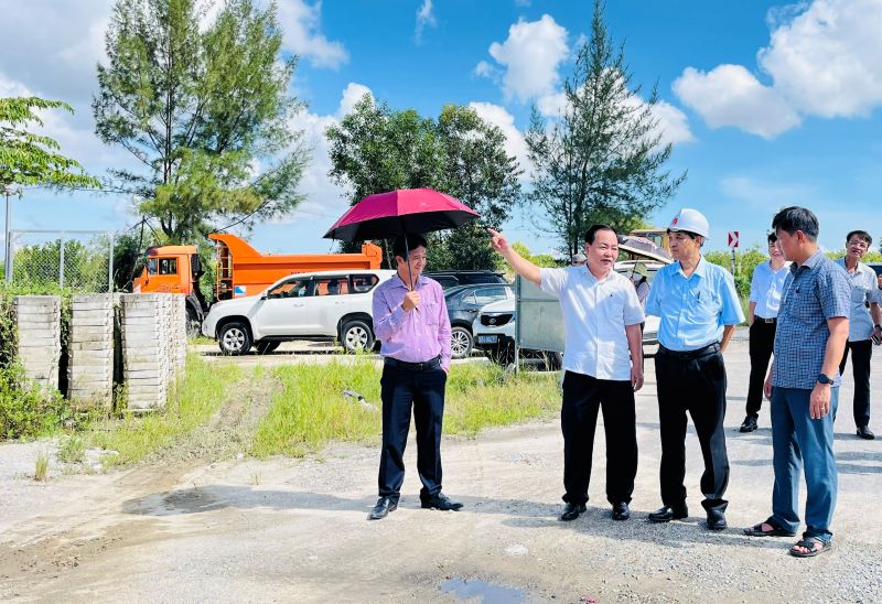 Phó Chủ tịch UBND thành phố Lê Quang Nam cùng đoàn công tác cũng đã đến khảo sát vị trí xây dựng Khu phi thuế quan gắn với sân bay Chu Lai.