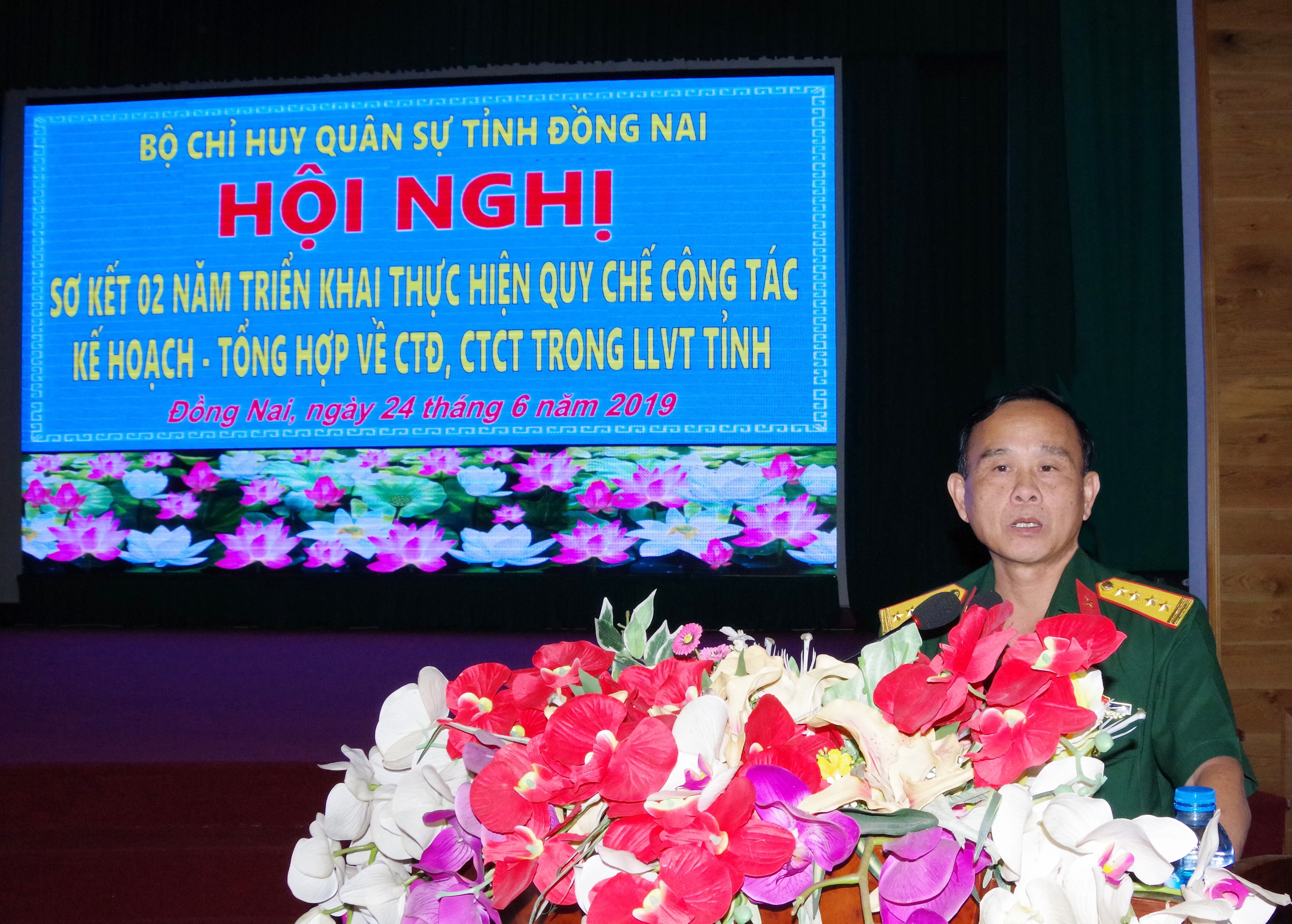 Đại tá Huỳnh Thanh Liêm, Chính ủy Bộ CHQS tỉnh đề nghị cấp ủy, chỉ huy các cơ quan đơn vị tiếp tục nâng cao chất lượng xây dựng văn kiện CTĐ, CTCT; tăng cường công tác bồi dưỡng, tập huấn, nâng cao nhận thức, năng lực công tác cho cán bộ chính trị các cấp; thường xuyên kiểm tra, sâu sát cơ sở để chấn chỉnh những mặt còn hạn chế, nhân rộng những điển hình tiên tiến trong thực hiện công tác Kế hoạch - Tổng hợp về CTĐ, CTCT; định kỳ tổ chức sơ, tổng kết rút kinh nghiệm, kịp thời đề xuất, kiến nghị với cấp trên sửa đổi, bổ sung phù hợp với tình hình thực tiễn của cơ quan, đơn vị.