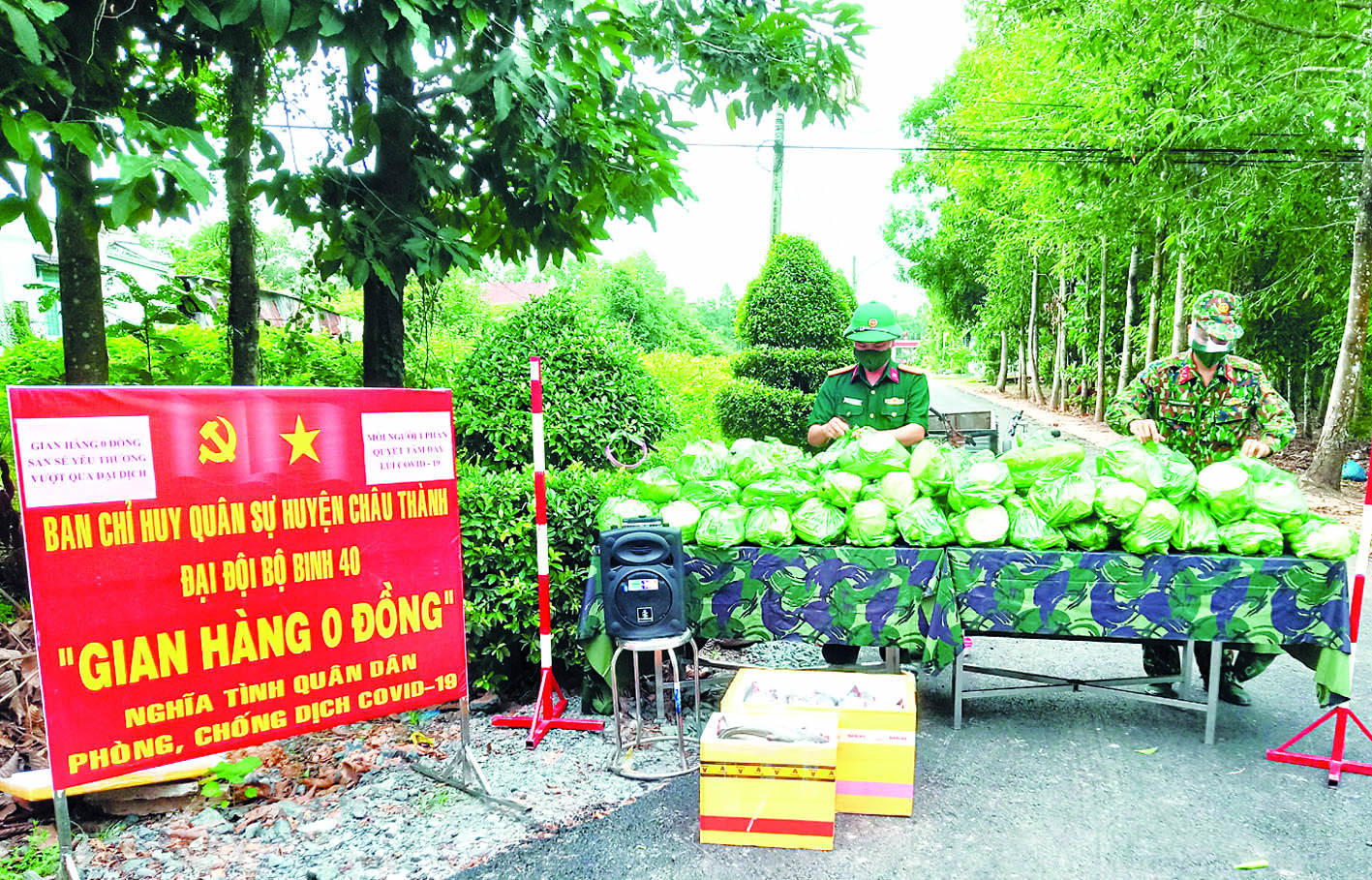 Đợt dịch Covid-19 lần thứ tư bùng phát, Tây Ninh là một trong những địa phương có số ca dương tính với SARS-CoV-2 khá cao. Trước tình hình đó, LLVT tỉnh dồn toàn lực vào công tác PCD. Đại tá Đỗ Thành Việt, Phó Chính ủy Bộ CHQS tỉnh Tây Ninh, cho biết: Từ ngày 2/5, Bộ CHQS tỉnh đã cử 516 cán bộ, chiến sĩ bộ đội và dân quân thường trực của các đơn vị tăng cường cho lực lượng biên phòng quản lý chặt tuyến biên giới, ngăn chặn nhập cảnh trái phép. Đặc biệt, LLVT tỉnh triển khai hàng loạt hoạt động góp phần tích cực vào công tác PCD, như: Tham gia trực chốt PCD; bảo đảm hậu cần, canh gác tại các khu cách ly, cơ sở điều trị bệnh nhân Covid-19; giúp dân thu hoạch hoa màu; vận động hỗ trợ Nhân dân trong khu vực phong tỏa với những “Gian hàng 0 đồng”, “Chuyến xe 0 đồng”...