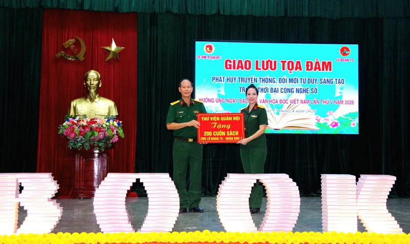 (QK7 Online) - Ngày 17/4, trong không khí thi đua sôi nổi chào mừng kỷ niệm 51 năm Ngày giải phóng miền Nam (30/4), 72 năm Chiến thắng Điện Biên Phủ (7/5), 136 năm Ngày sinh Chủ tịch Hồ Chí Minh (19/5), Cục Chính trị Quân khu phối hợp cùng Lữ đoàn 75 tổ chức Chương trình Giao lưu, tọa đàm, hưởng ứng Ngày Sách và Văn hóa đọc lần thứ 5, năm 2026 với chủ đề: “Phát huy truyền thống, đổi mới tư duy, sáng tạo trong thời đại công nghệ số”.