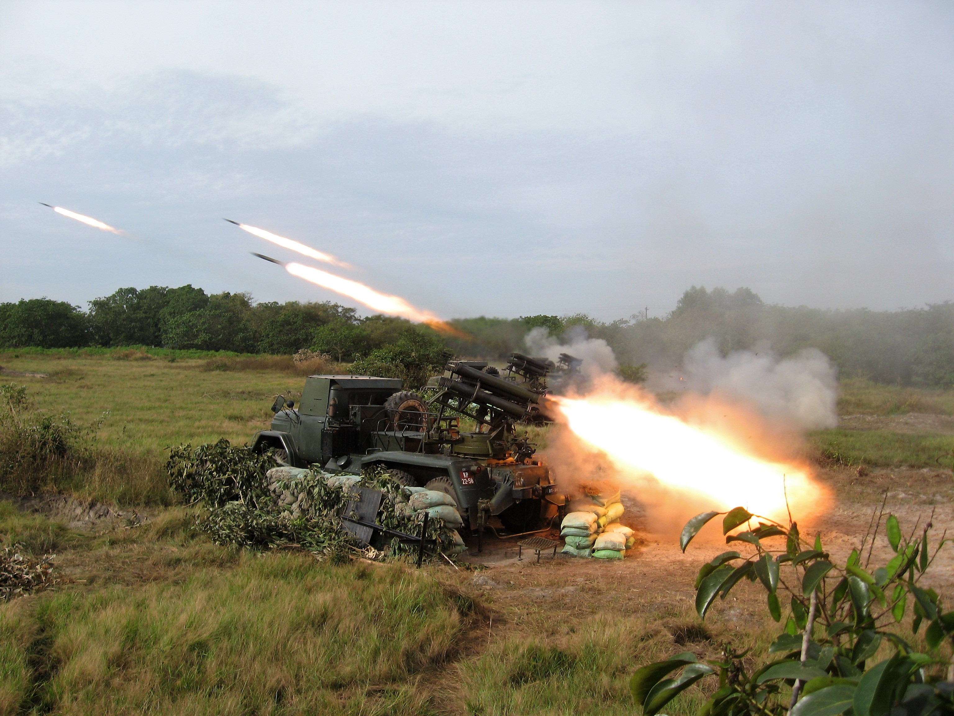 Pháo binh Lữ đoàn 75 khai hỏa trong diễn tập.