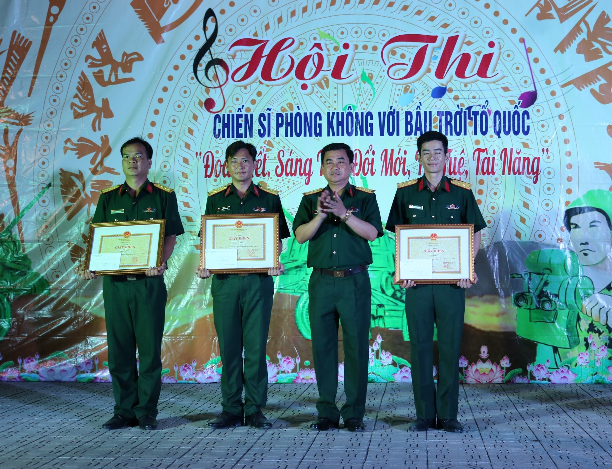 Thượng tá Hồ Văn Lộc - Phó Chính ủy Lữ đoàn tặng bằng khen cho các đội đạt giải