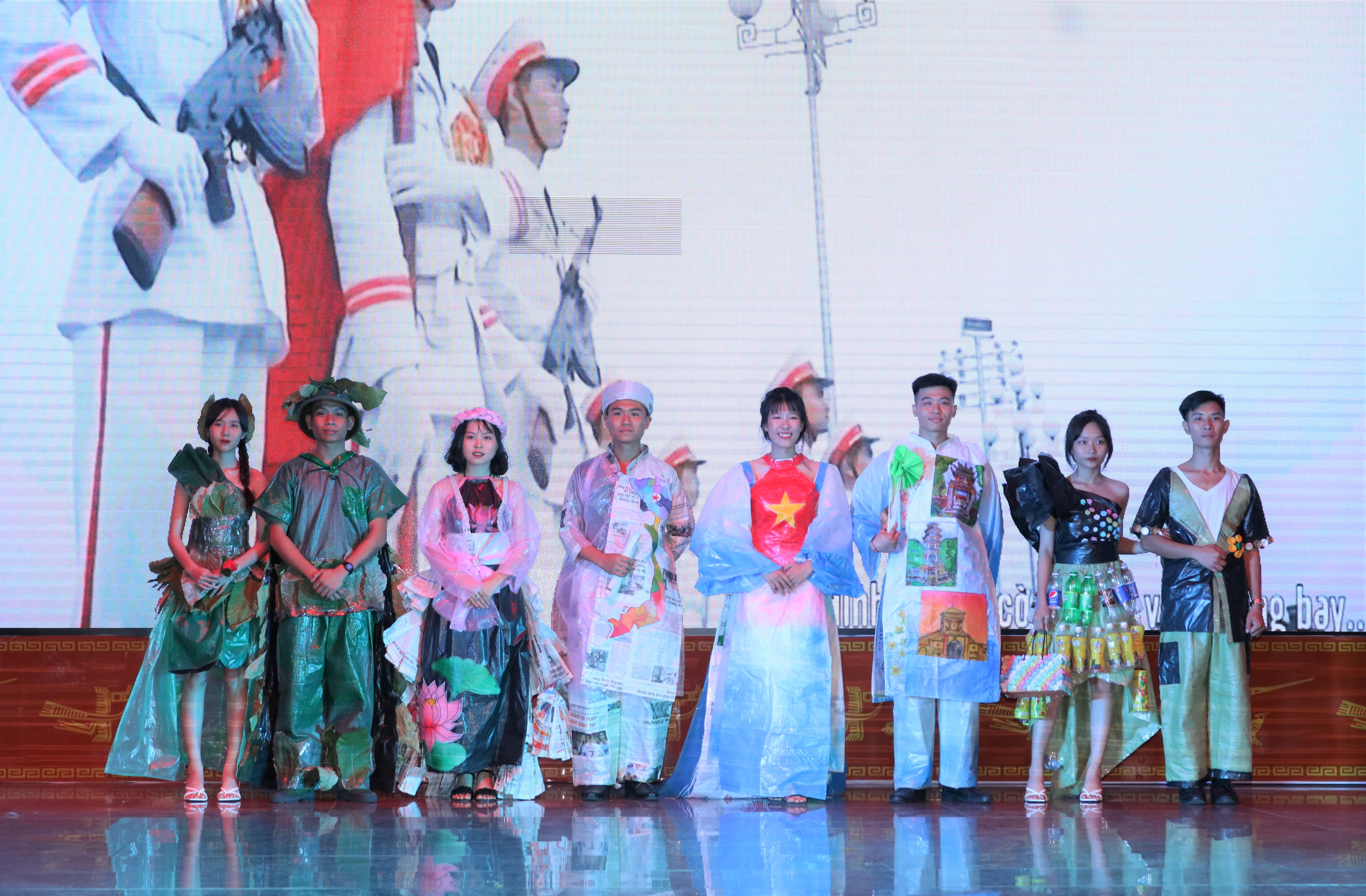 Tiết mục biểu diễn thời trang sáng tạo, độc đáo với chất liệu thiết kế từ bao ni lông.