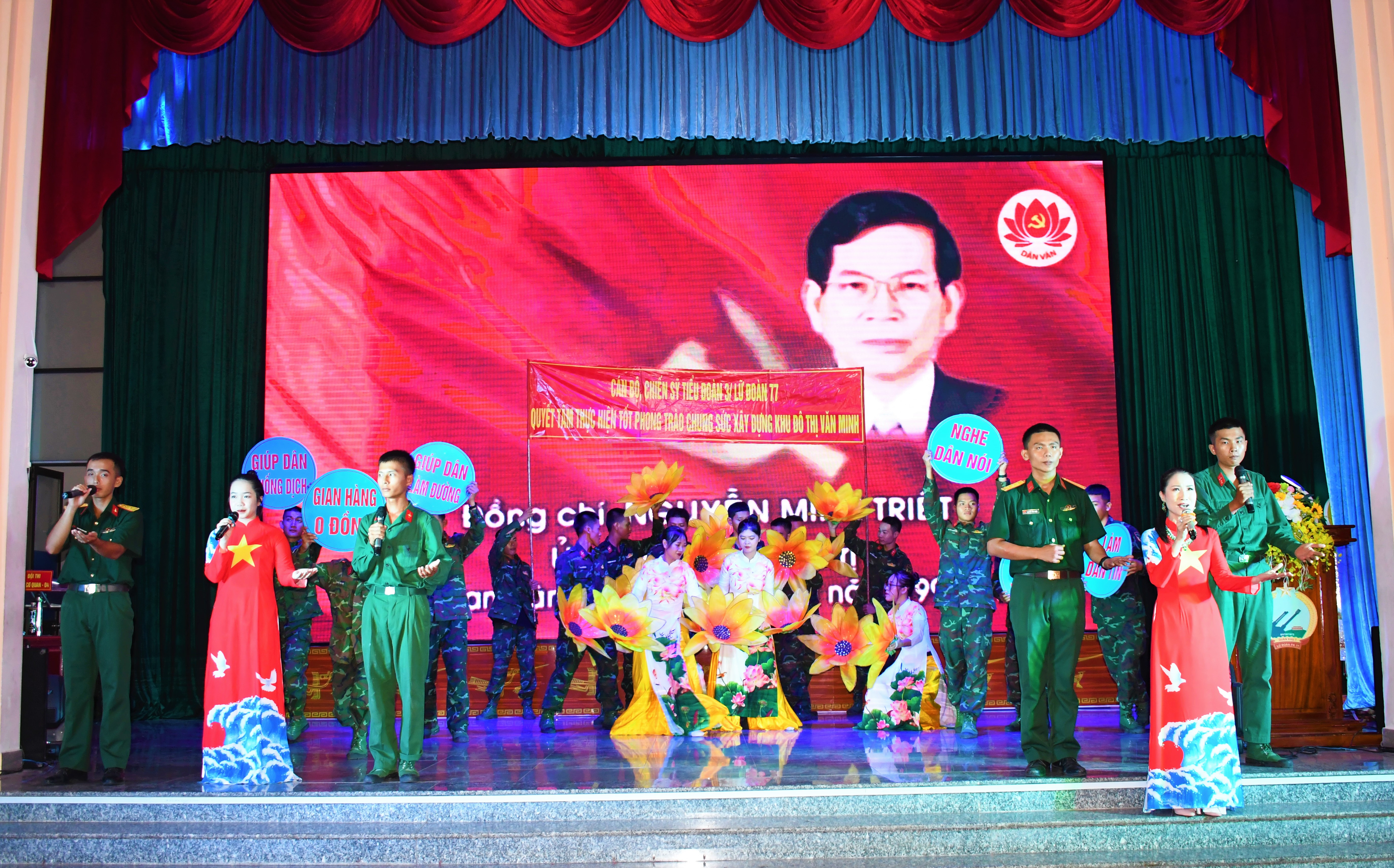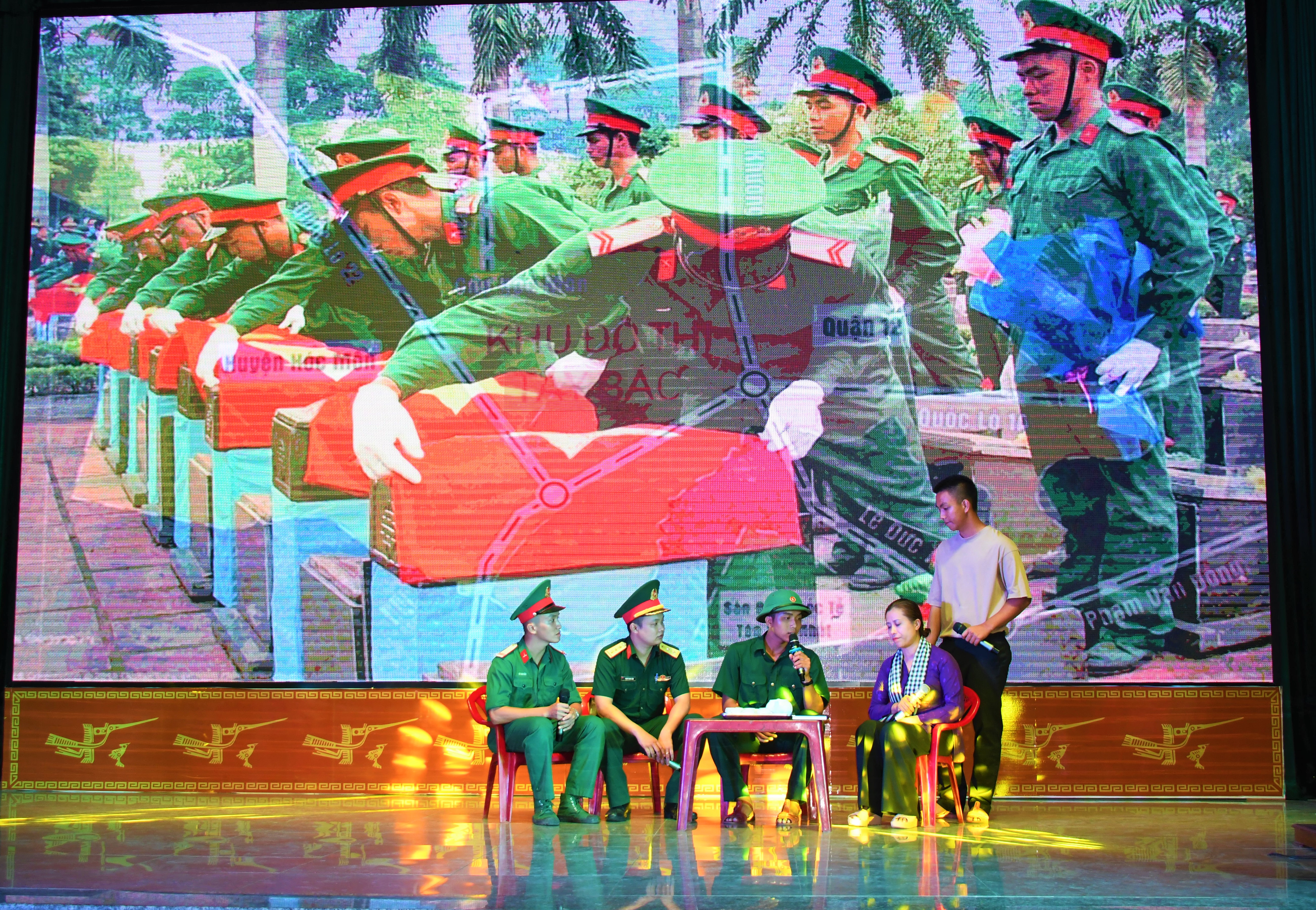 Phần thi tiểu phẩm gây xúc động của đơn vị Tiểu đoàn 1/Lữ đoàn 77 vinh dự đạt giải nhất trong hội thi với tiểu phẩm " Di dời kỷ vật".