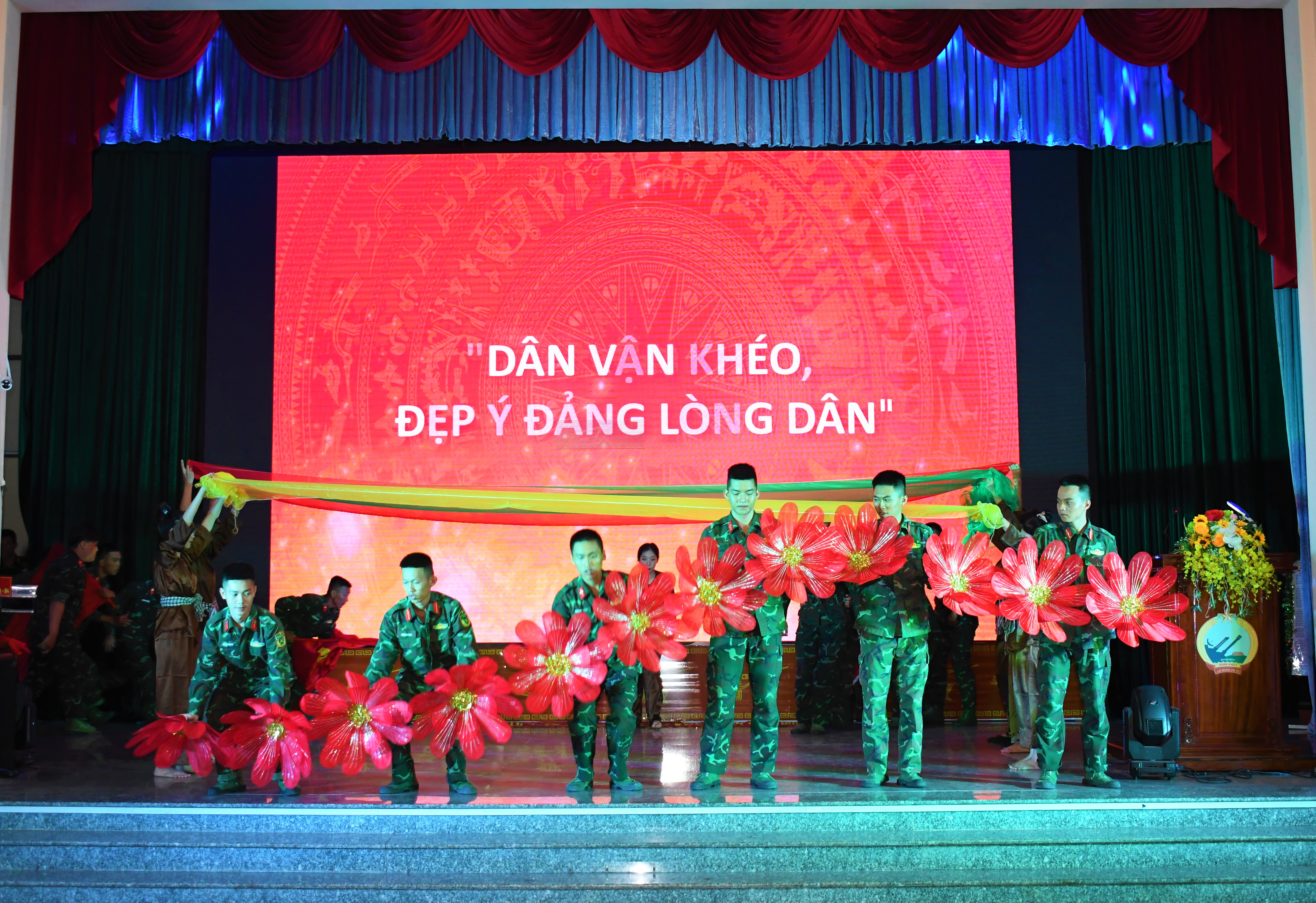 Màn chào hỏi của đội thi "Dân vận khéo" Tiểu đoàn 3.