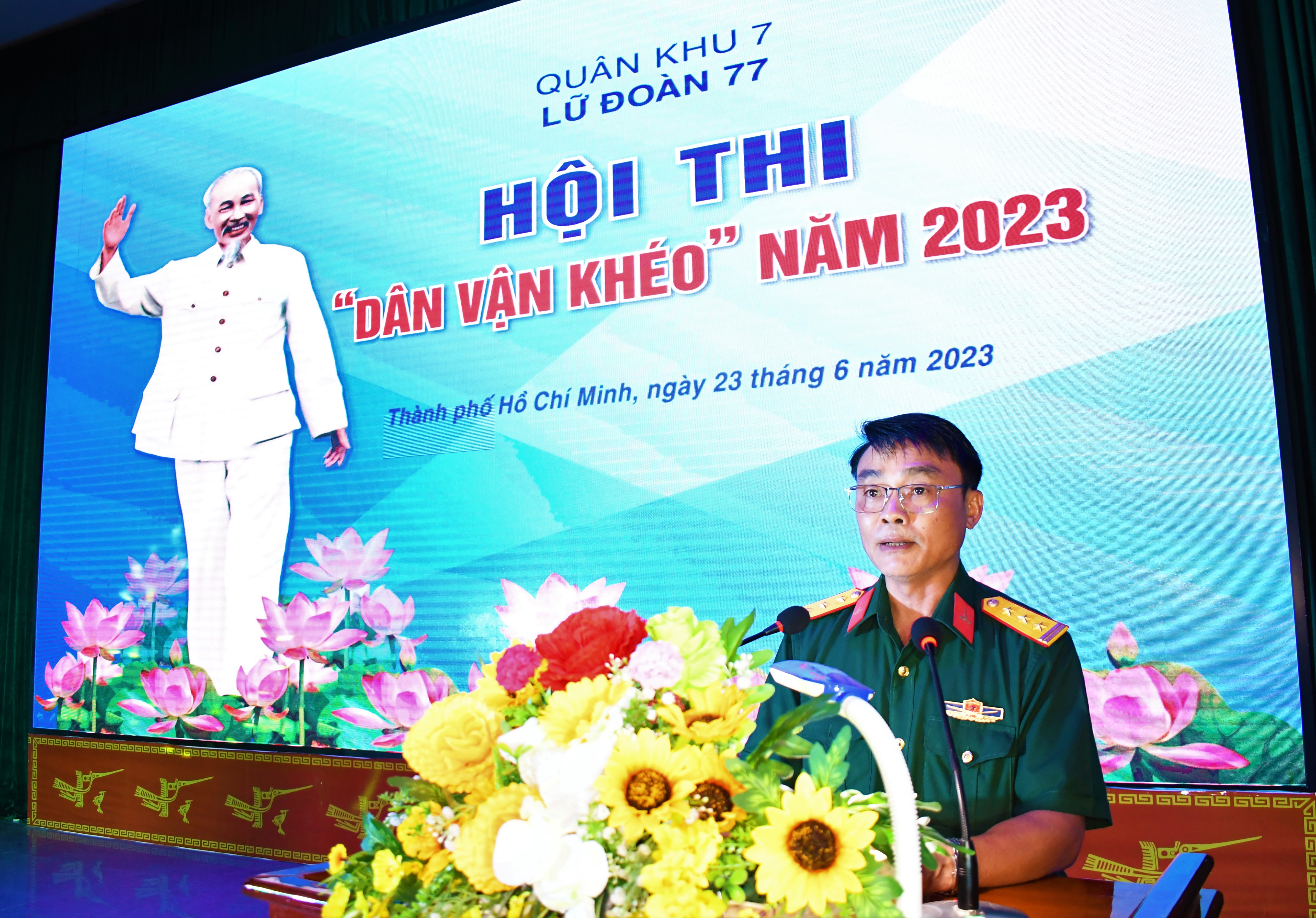 Thượng tá Đinh Tiên Hoàng, Phó Chính ủy Lữ đoàn phát biểu tại hội thi.