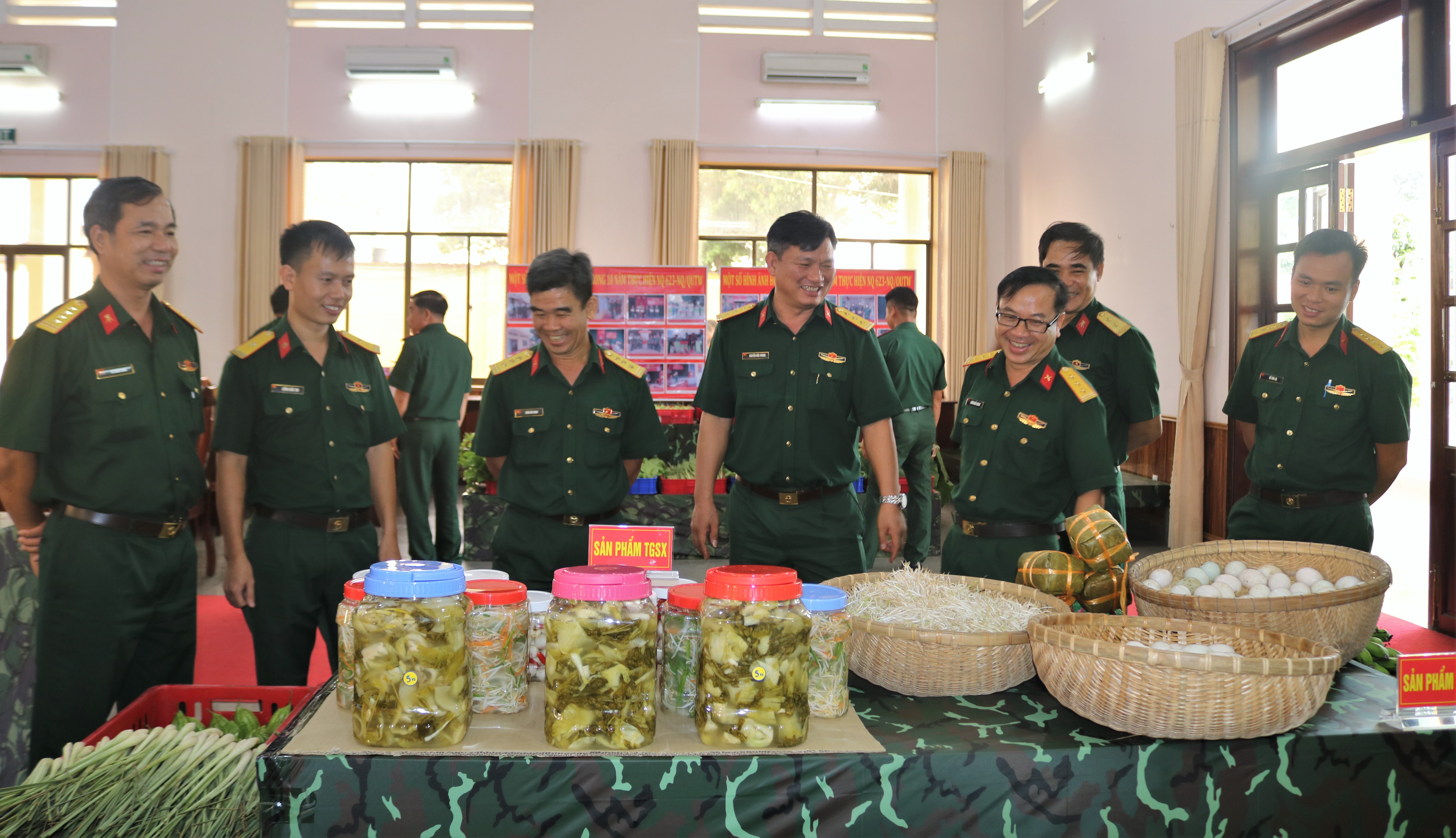 Đại biểu tham quan các sản phẩm tăng gia của lữ đoàn.