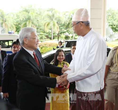 Tổng thống Htin Kyaw nhấn mạnh, kể từ khi thiết lập quan hệ ngoại giao tháng  5/1975 đến nay, hai nước luôn là bạn bè thân thiết của nhau; chuyến thăm cấp nhà nước của Tổng Bí thư Nguyễn Phú Trọng tới Myanmar lần này mở ra một chương mới trong quan hệ hợp tác giữa hai nước. Tổng thống khẳng định “Myanmar luôn coi trọng quan hệ hợp tác với các nước ASEAN, trong đó có Việt Nam; và Myanmar sẽ phối hợp với các nước thành viên ASEAN khác để tăng cường mối quan hệ gần gũi, thân thiết này”.