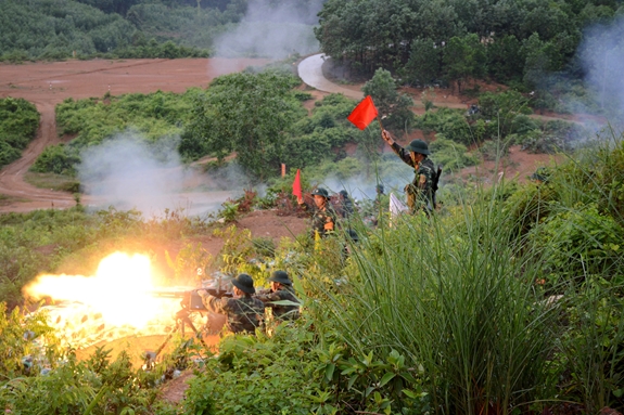 Bắn đạn thật trong diễn tập khu vực phòng thủ. Ảnh: Văn Chung