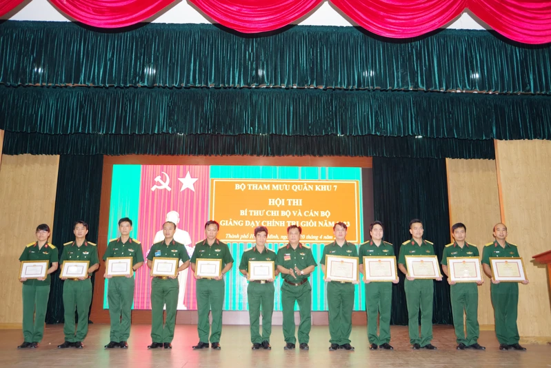 Thượng tá Trần Minh Hiếu, Bí thư Đảng ủy, Phó Trưởng phòng Điều tra Hình sự đạt giải Ba Hội thi Bí thư Chi bộ Giỏi trong Bộ Tham mưu năm 2023.