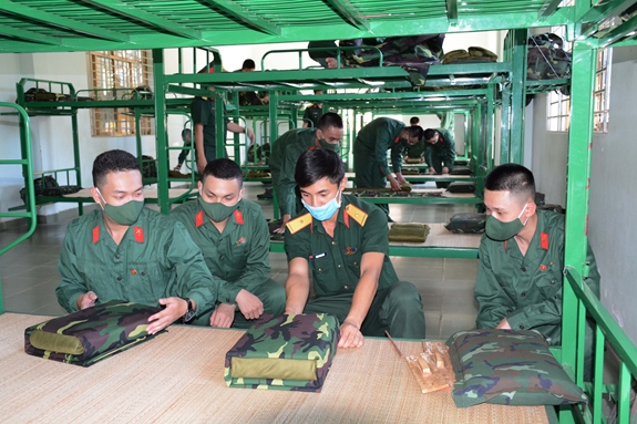 Hướng dẫn chiến sĩ mới gấp nội vụ.