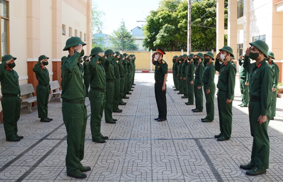 Hướng dẫn chiến sĩ mới tập động tác chào.