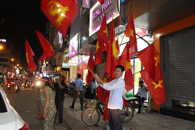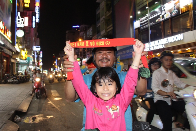 Bác Chu Thành Lai (đường, Hai Bà Trưng, Quận 1) phấn khởi cho biết: "Năm nay đội tuyển U.23 đá tốt quá. Bác cảm thấy rất tự hào. Nhà bác nằm ngay đường nên cứ thấy người dân chạy ngang cứ hô vang Việt Nam chiến thắng, Việt Nam vô địch thấy thật sướng. Hi vọng các cháu U.23 sẽ đoạt cúp vô địch trong trận chung kết".