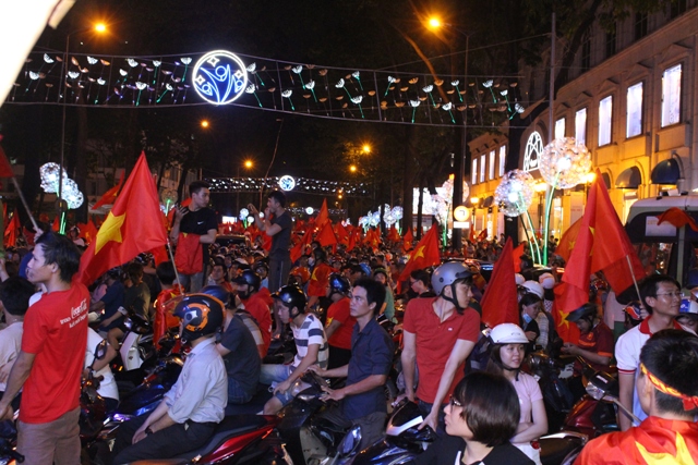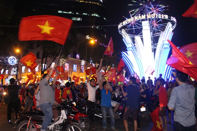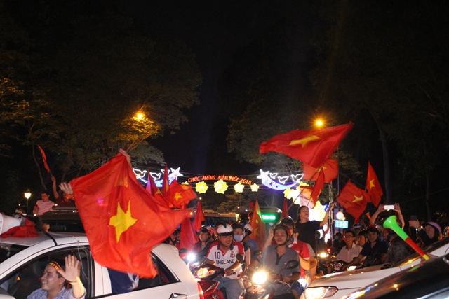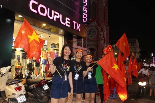 Ngay sau khi trận đấu kết thúc, nhóm phóng viên chúng tôi đã đổ về các ngã đường, khu phố trung tâm của thành phố Hồ Chí Minh để ghi lại khoảnh khắc người dân vui mừng sau chiến thắng lịch sử của những chàng cầu thủ trẻ.