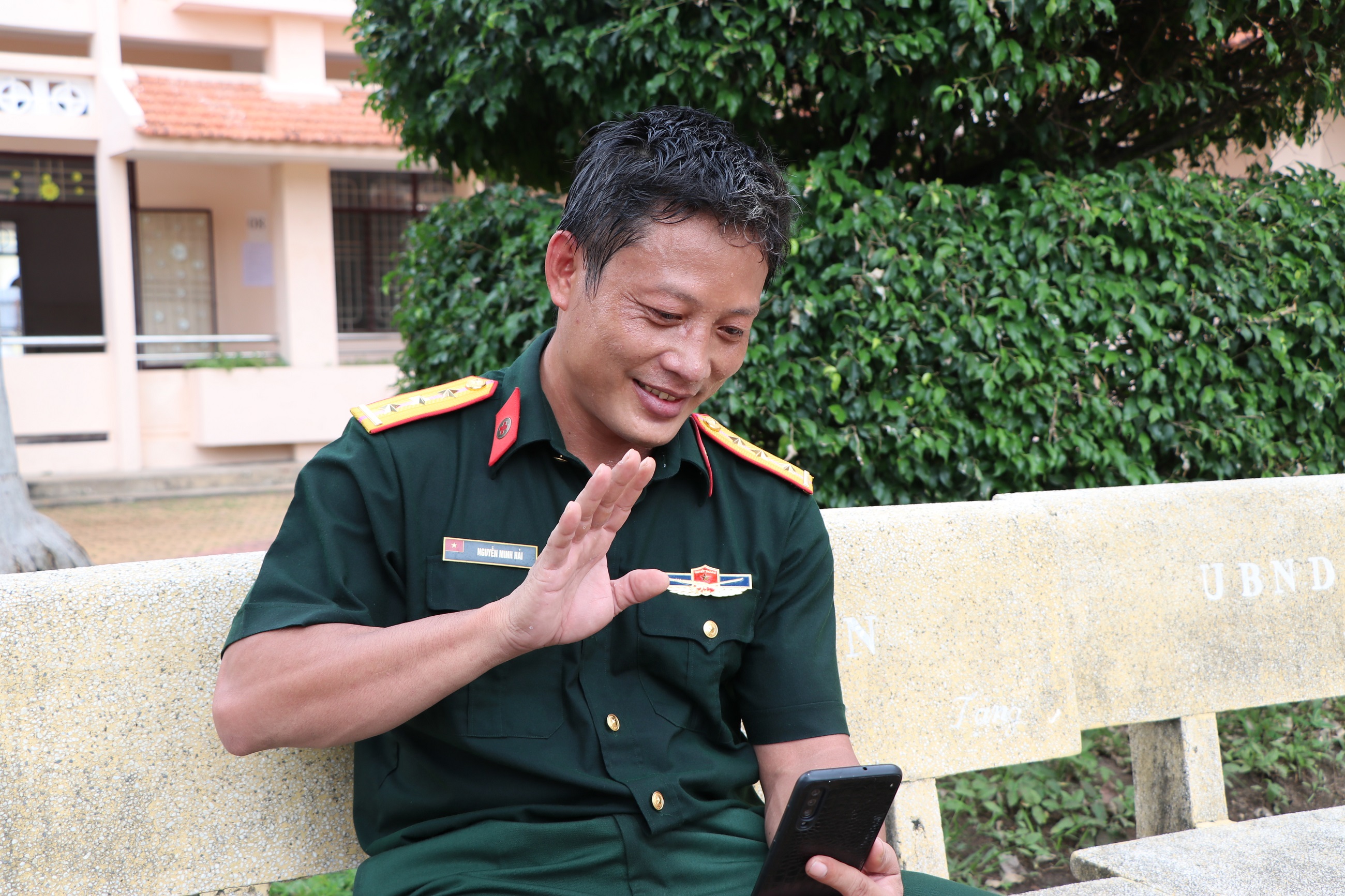 Thượng úy Nguyễn Minh Hải trò chuyện với con gái qua zalo điện thoại.