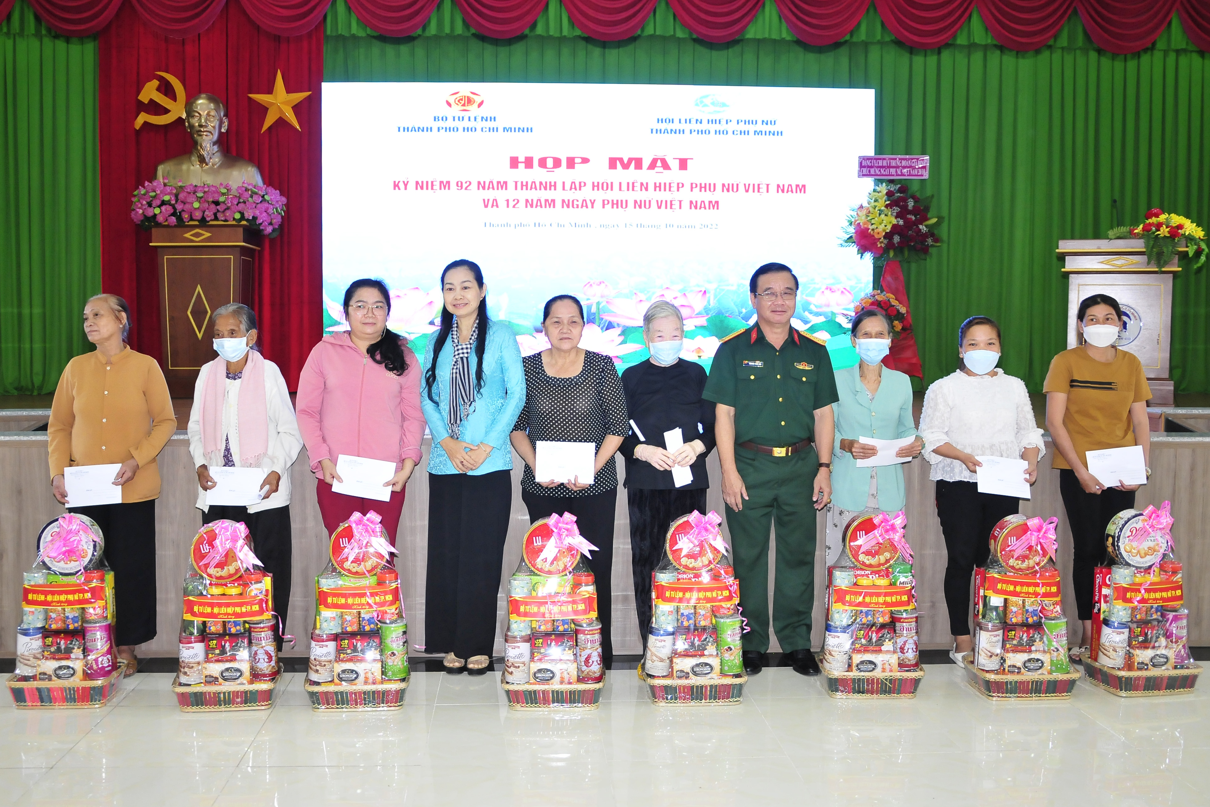 Thủ trưởng Bộ Tư lệnh TPHCM và lãnh đạo Hội LHPN TPHCM tặng quà các gia đình chính sách.