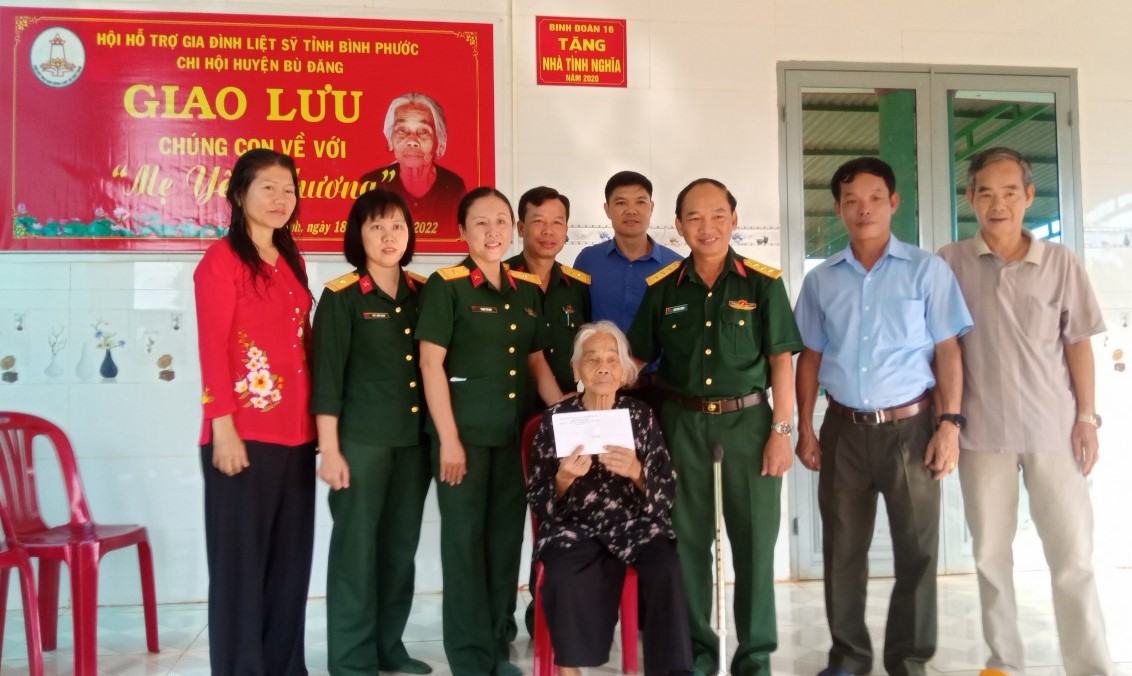 Bộ CHQS tỉnh Bình Phước tặng quà Mẹ Việt Nam anh hùng.