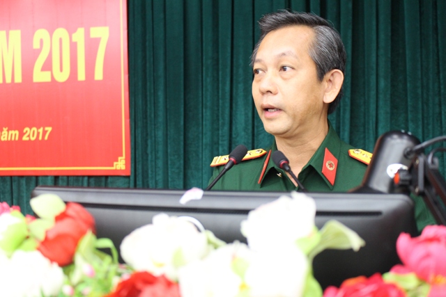 Đại tá, TS.BS Lê Quang Trí - Giám đốc Bệnh viện Quân y 7A phát biểu tại hội nghị Công tác tuyến năm 2017
