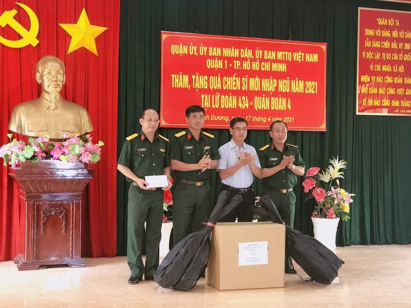 Thay mặt cấp ủy, chính quyền Quận 1, các đồng chí trong đoàn cảm ơn Ban chỉ huy các đơn vị đã giúp đỡ chiến sĩ mới thích nghi với môi trường Quân đội, với những nội quy, quy định về mặt thời gian, đi, đứng, tác phong người lính.