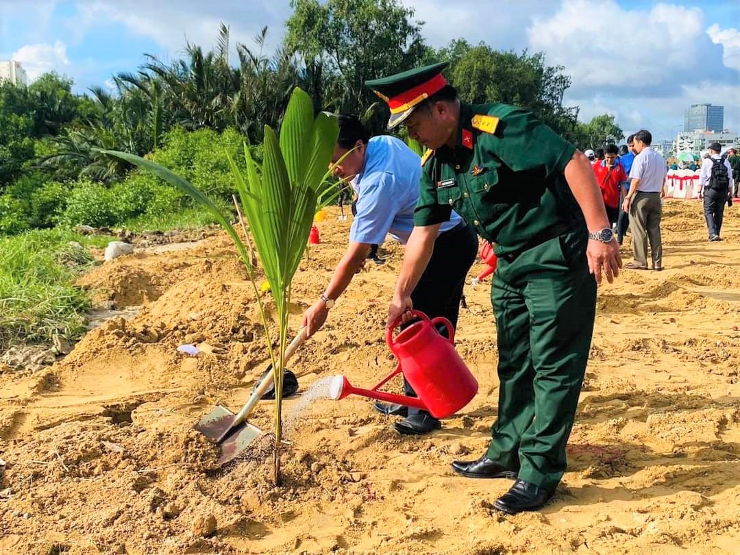 Thủ trưởng Bộ Tư lệnh TP.HCM và lãnh đạo Quận 7 tham gia trồng cây.