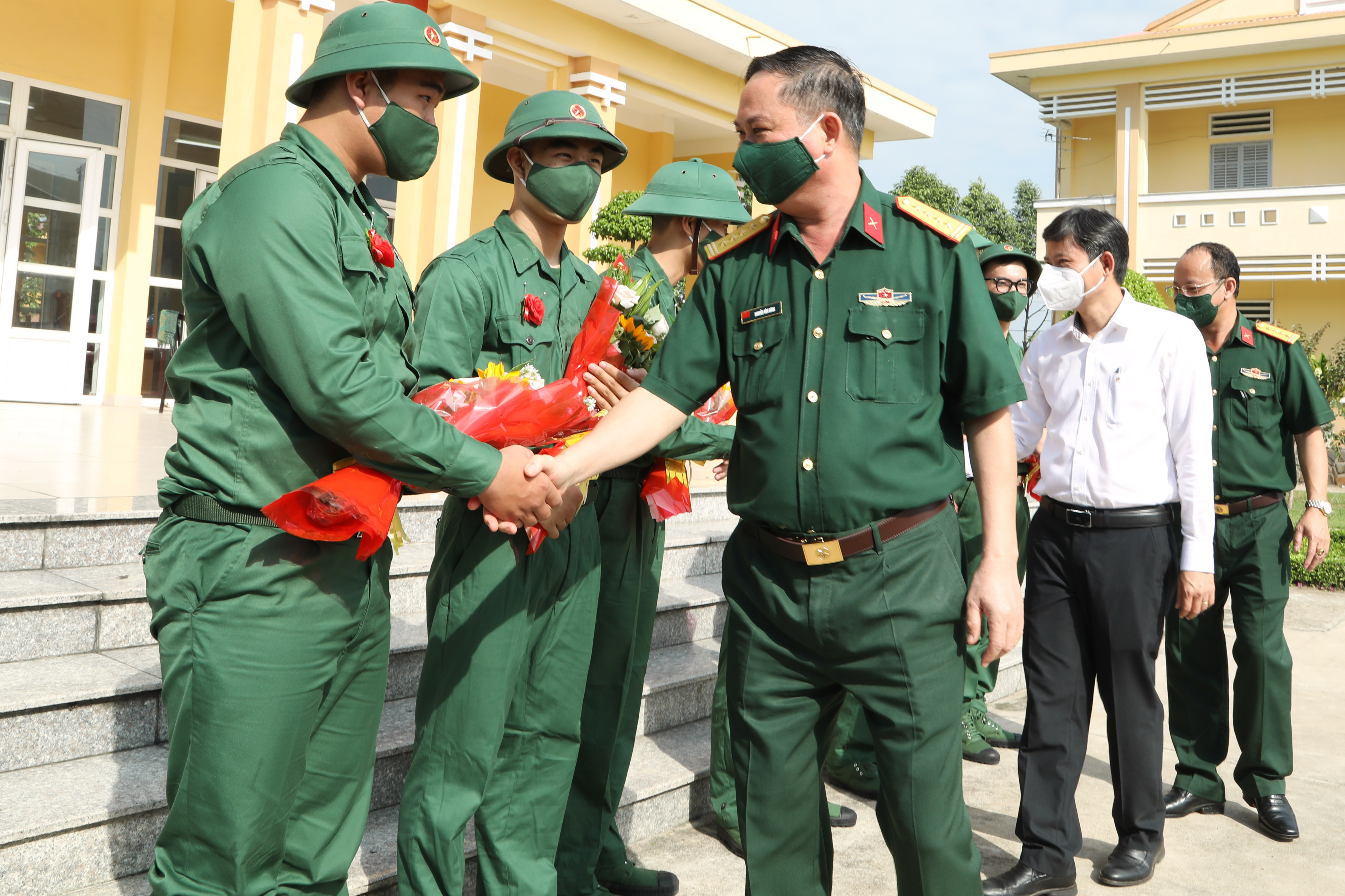 Thủ trưởng Bộ Tư lệnh Quân đoàn 4 động viên chiến sĩ mới thuộc Quận 4, TP Hồ Chí Minh nhập ngũ tại Lữ đoàn 434.